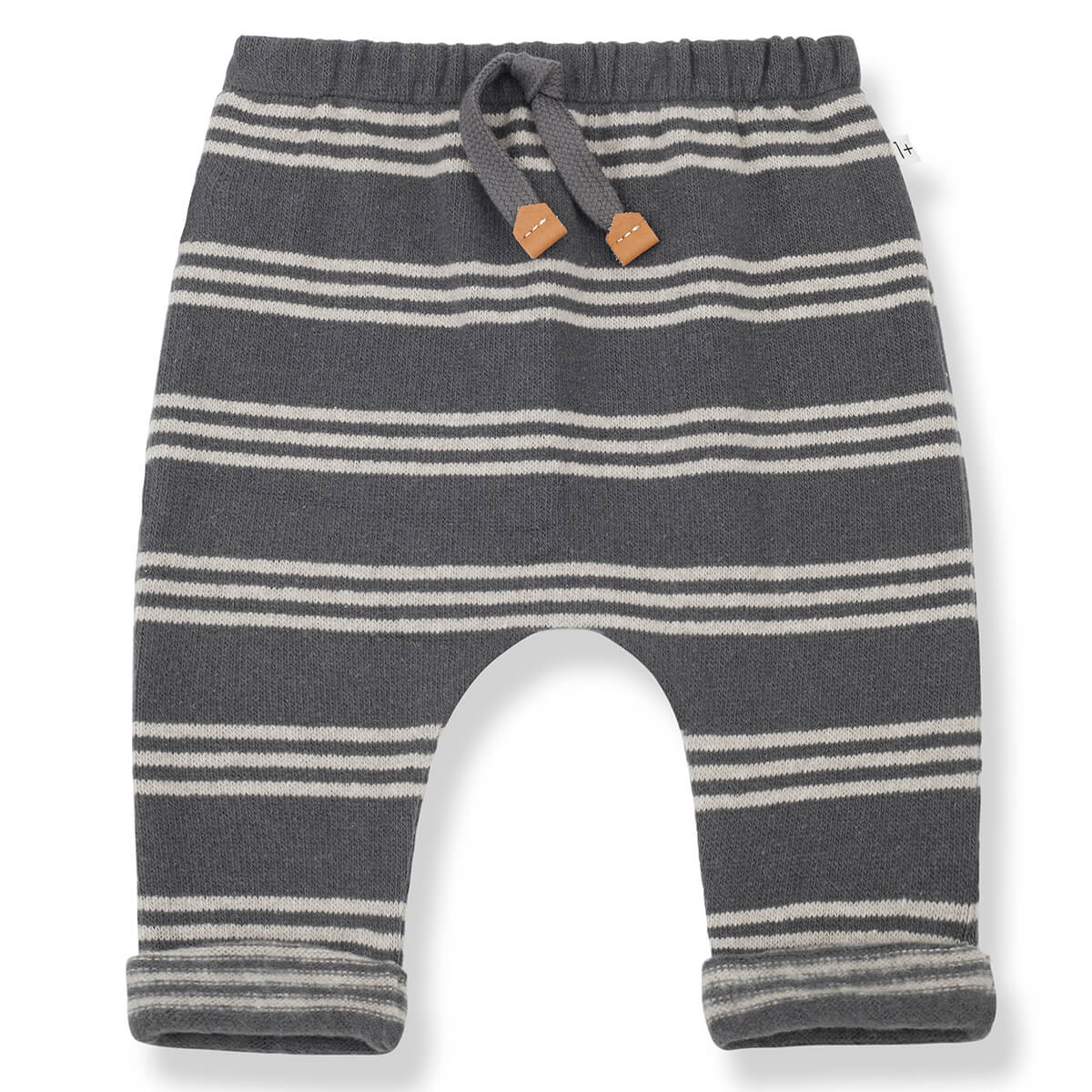 Uriel Pants by 1+ in the Family. Extra soft striped fleece baby trousers with a drawstring waist.