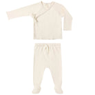 Wrap Top and Footed Pant Set in Natural by Quincy Mae