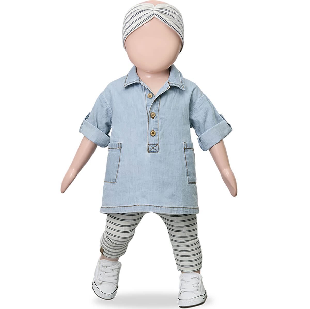 Cora Pants by 1+ in the Family. Baby leggings in a soft ribbed cotton. With elasticated waist and wooden button.