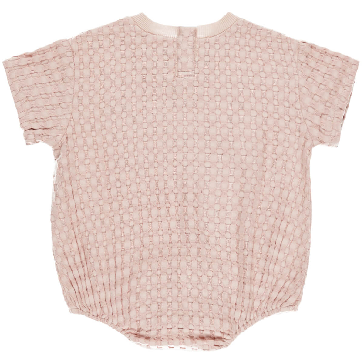 Relaxed Short Sleeve Bubble Romper in Bubblegum by Quincy Mae