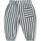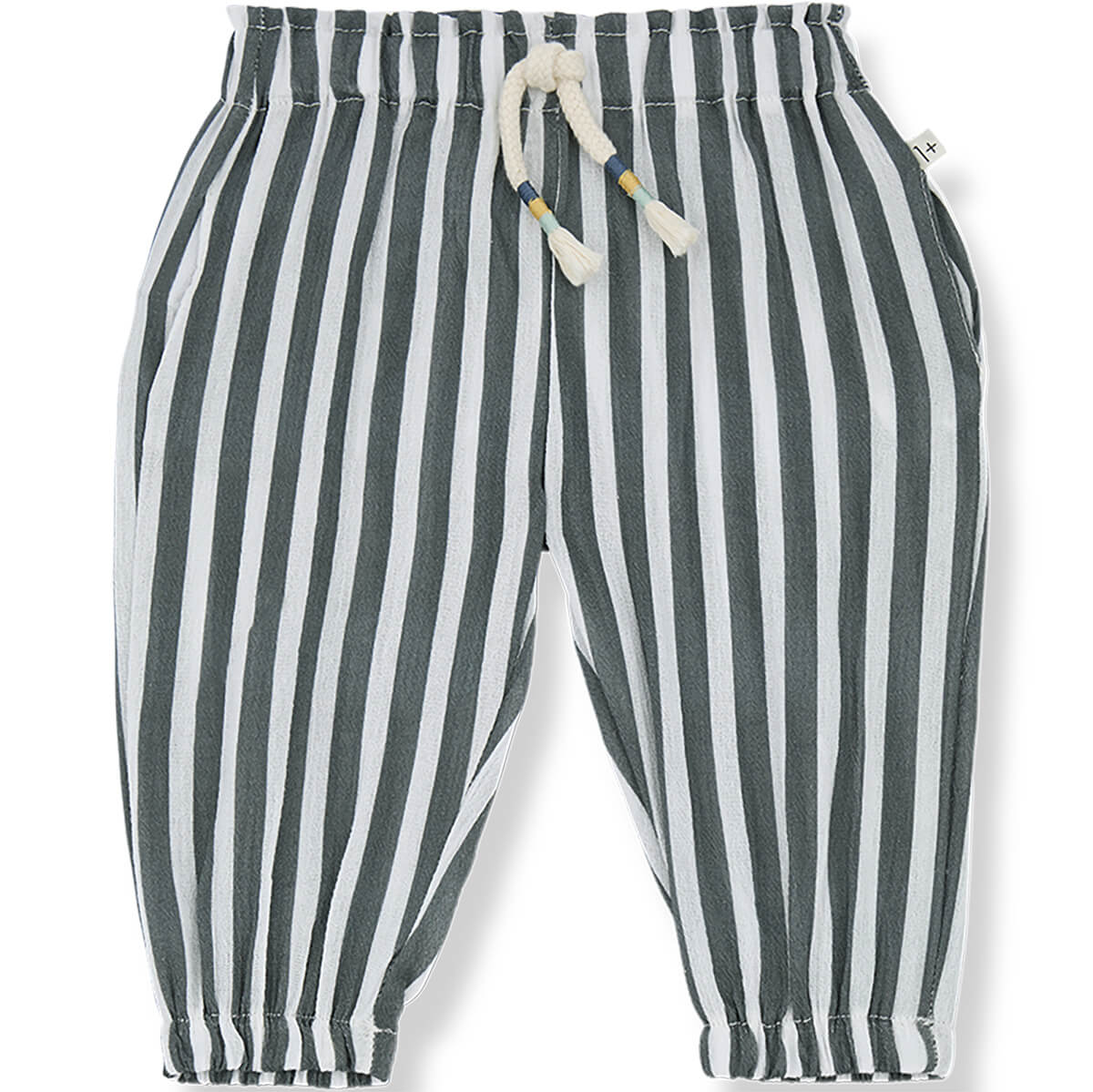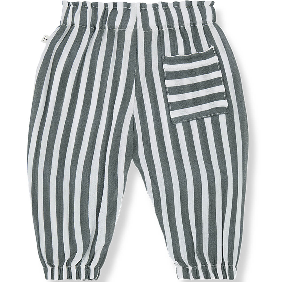 Zoe Pants by 1+ in the Family. Soft striped baby trousers with a drawstring waist, side pocket and back pocket.
