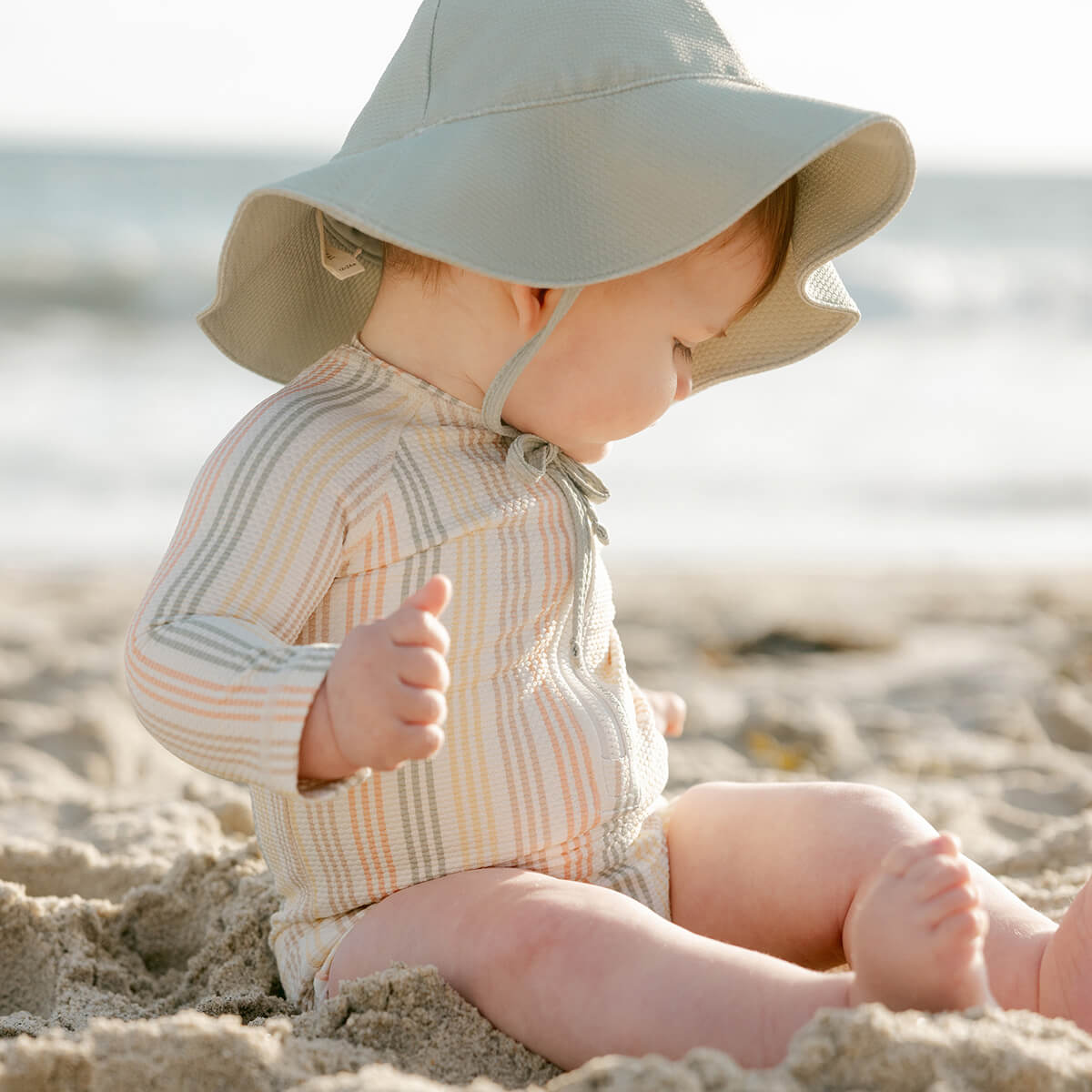 Long Sleeve One-Piece Rashguard in Multi Stripe by Quincy Mae