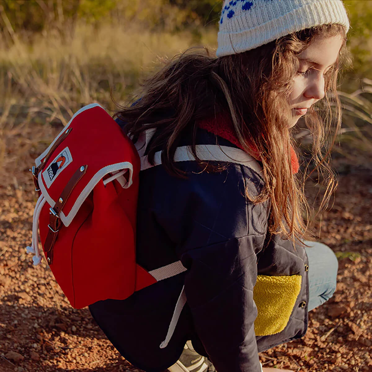 Matra Mini S kids backpack by YKRA. Inspired by the vintage mountaineering rucksacks of the 1970’s, the Mátra is YKRA's most popular model, named after the highest peak of Hungary. This backpack is the children’s version of YKRA's iconic Matra Mini backpack, inspired by classic hiking backpacks.