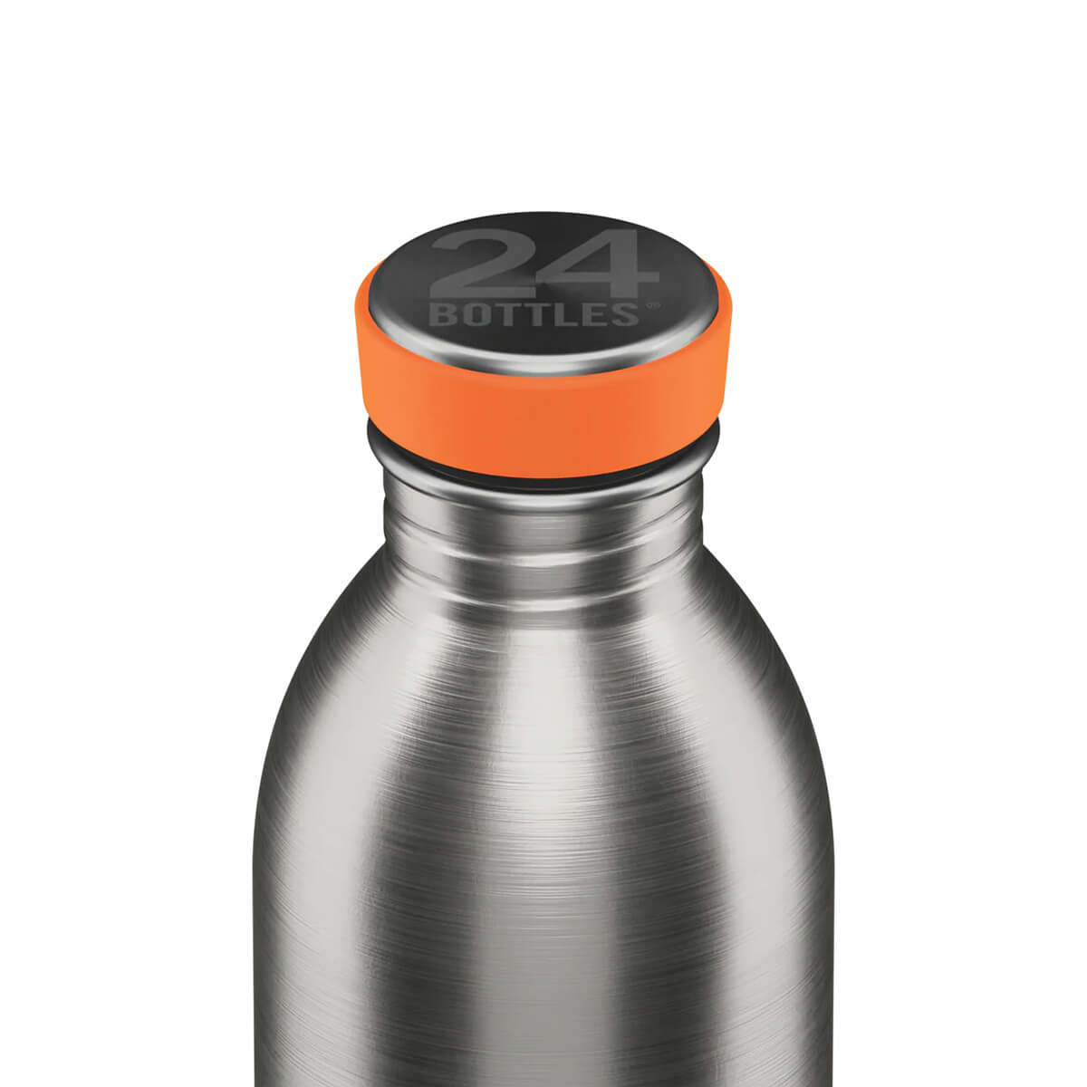Urban Bottle in brushed steel by 24 Bottles. The Urban Bottle is the most lightweight stainless steel bottle on the market weighing in at just 117g. It can follow you to the office, at the gym, in your everyday movements, ensuring your hydration. The brushed steel finish gives an ageless aesthetic, with subtle light reflections for an elegant touch. It is extremely resistant and dishwasher safe. The wide mouth allows comfortable drinking and easy ice filling. Suitable for any kind of drink and does not retain nor impart any flavour. Comes with the Urban Lid in orange, an extra lightweight water bottle lid designed to let you enjoy your hydration with easy and fast movements thanks to the one-twist opening system.