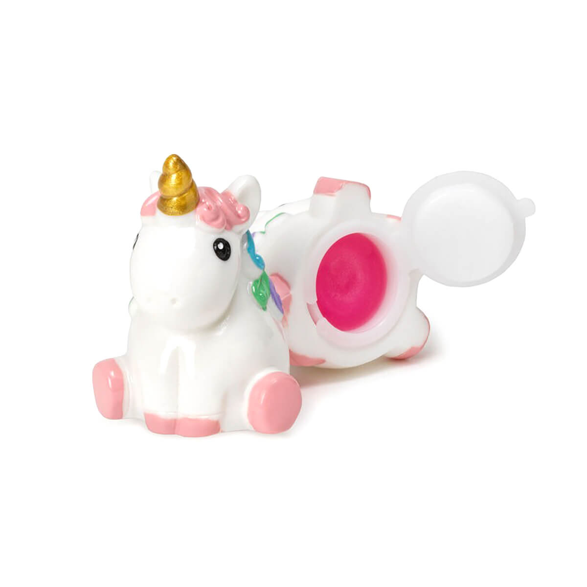 Unicorn Magic Kiss vanilla lip gloss by Legami. A little unicorn shaped pot of shiny pink lip gloss.