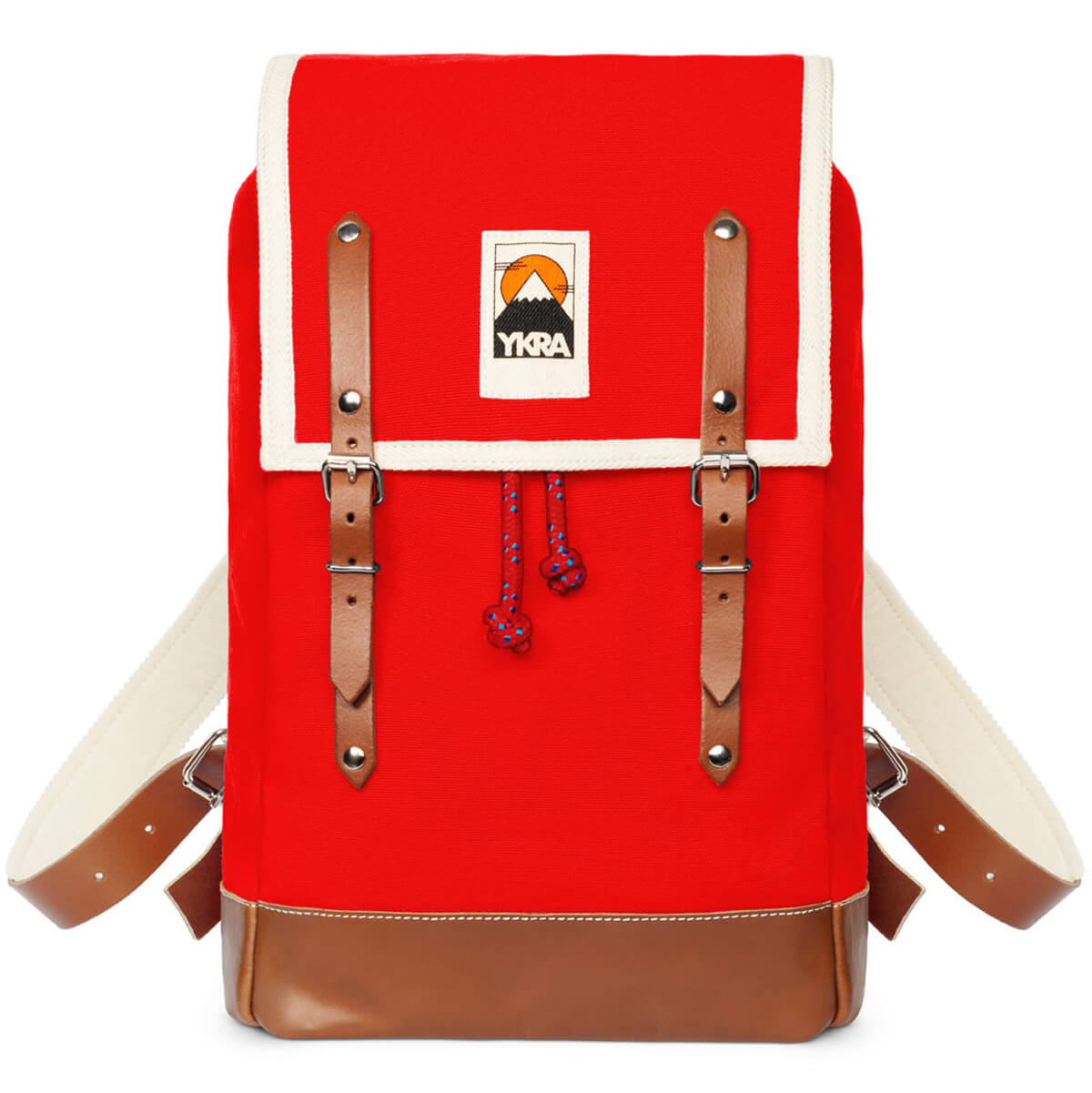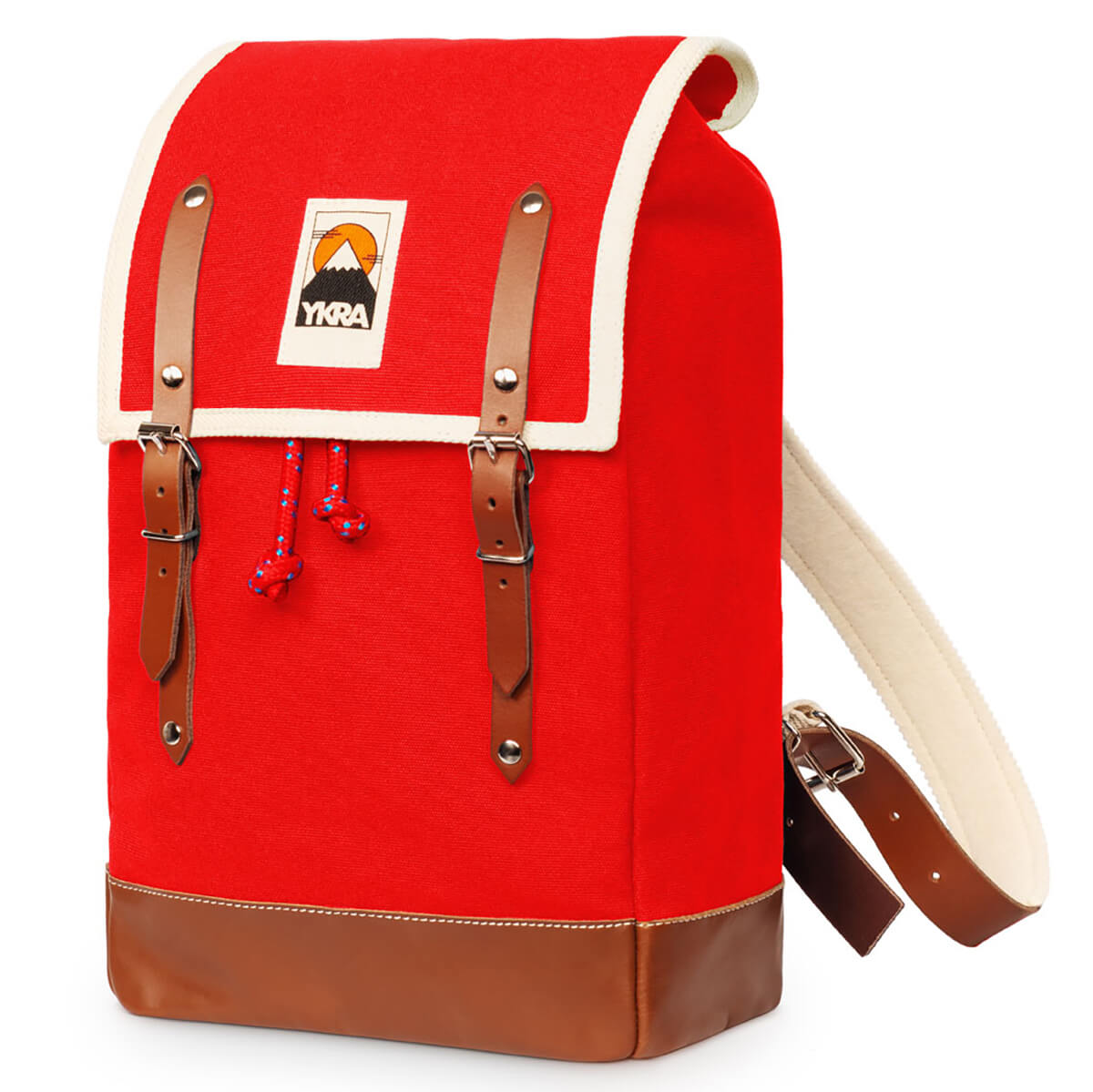 Matra mini leather backpack by YKRA. Inspired by the vintage mountaineering rucksacks of the 1970’s, the Mátra is YKRA's most popular model, named after the highest peak of Hungary. This backpack features a leather bottom, and soft felt lining on the leather straps. It has an inner laptop compartment that fits a 13" Ultrabook or MacBook Air, two smaller pockets, and a zippered pocket in the top flap. The closure has an adjustable rope and two leather straps with metal buckles. This pack is perfect for hiking or as a daily carry.