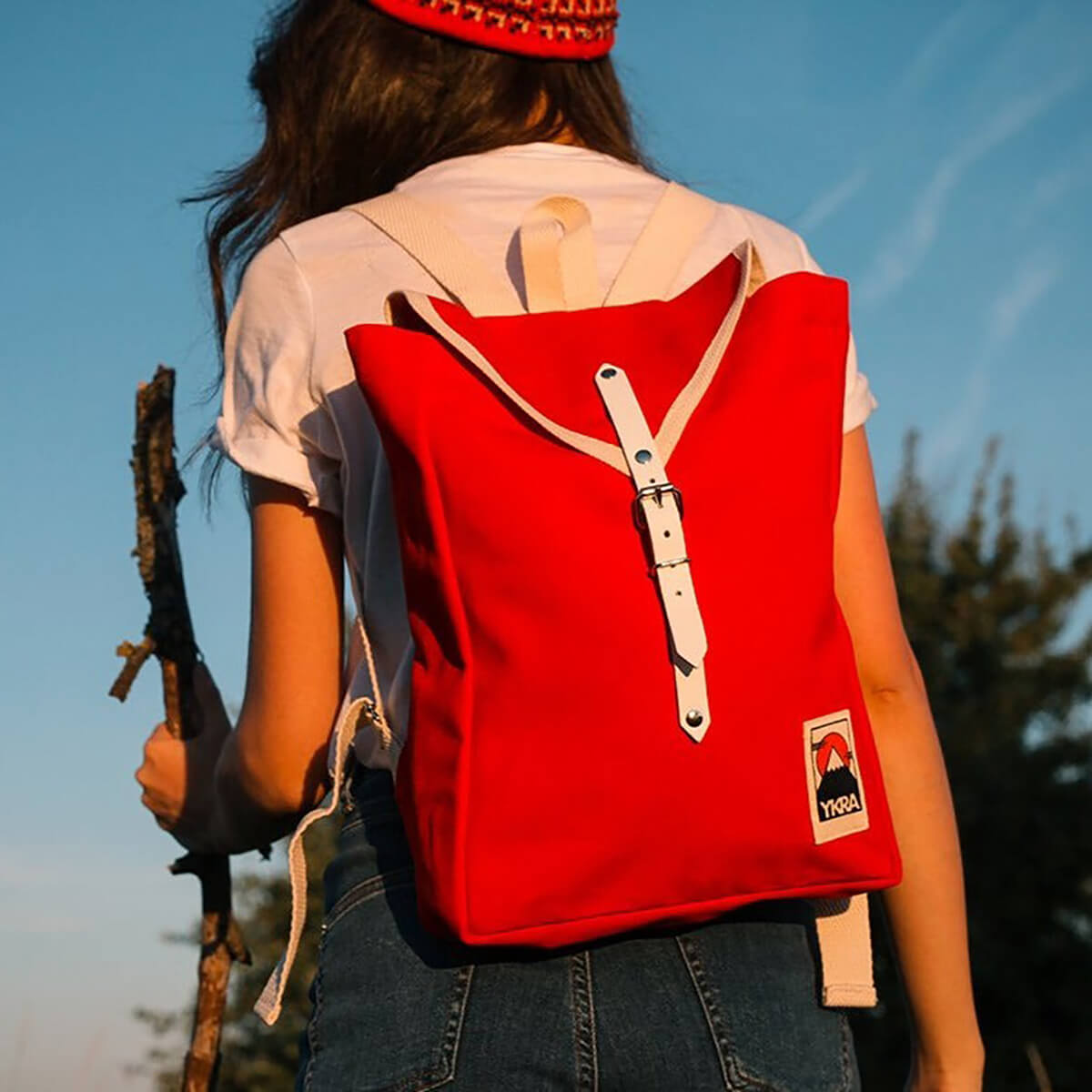 Scout backpack by YKRA. Drawing inspiration from the classical boy scout's backpack, this pack is made for the city. This fun small sized backpack is ideal as a children’s backpack. It has a drawstring on the inside for added safety and the inner sleeve fits a tablet.