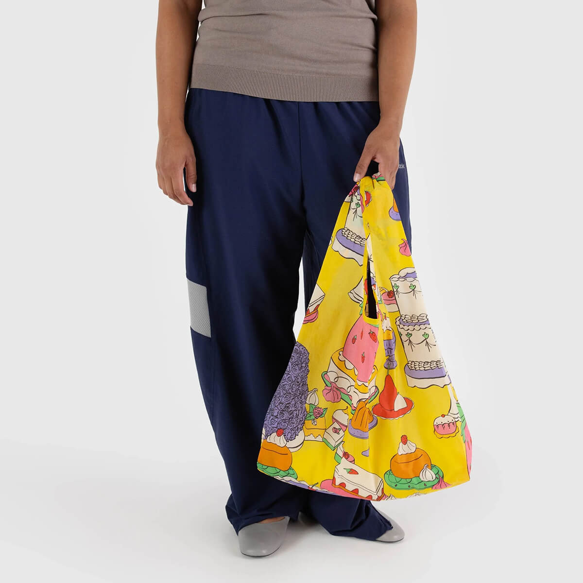 Standard bag by Baggu. Baggu's best selling reusable bag isn't just for the grocery store, it goes everywhere and hauls almost anything. Carries 2-3 plastic grocery bags worth of stuff comfortably in hand or over your shoulder.