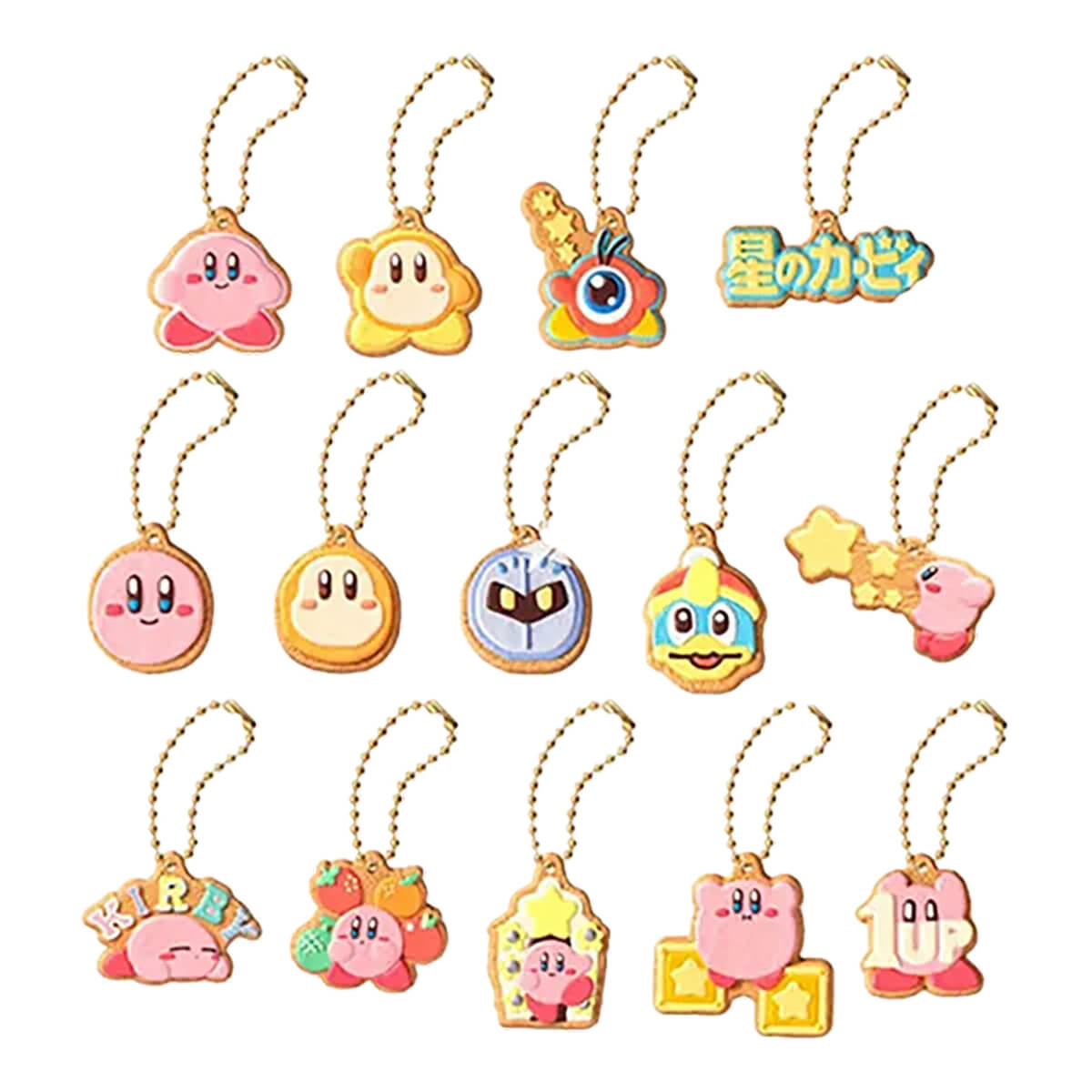 Kirby Cookie Charmcot Keychain Blind Bag by Bandai. Kirby fans will love these adorable charms. Each fun charm looks like a delicious baked cookie with icing, and comes with a ball chain so that you can take them with you wherever you go. With fourteen different designs to collect and trade with your friends, each blind bag is a complete surprise so you never know which one you will discover. Plus each packet comes with a piece of soda-flavoured bubble gum making them even sweeter to enjoy.