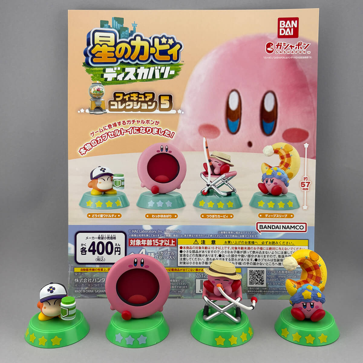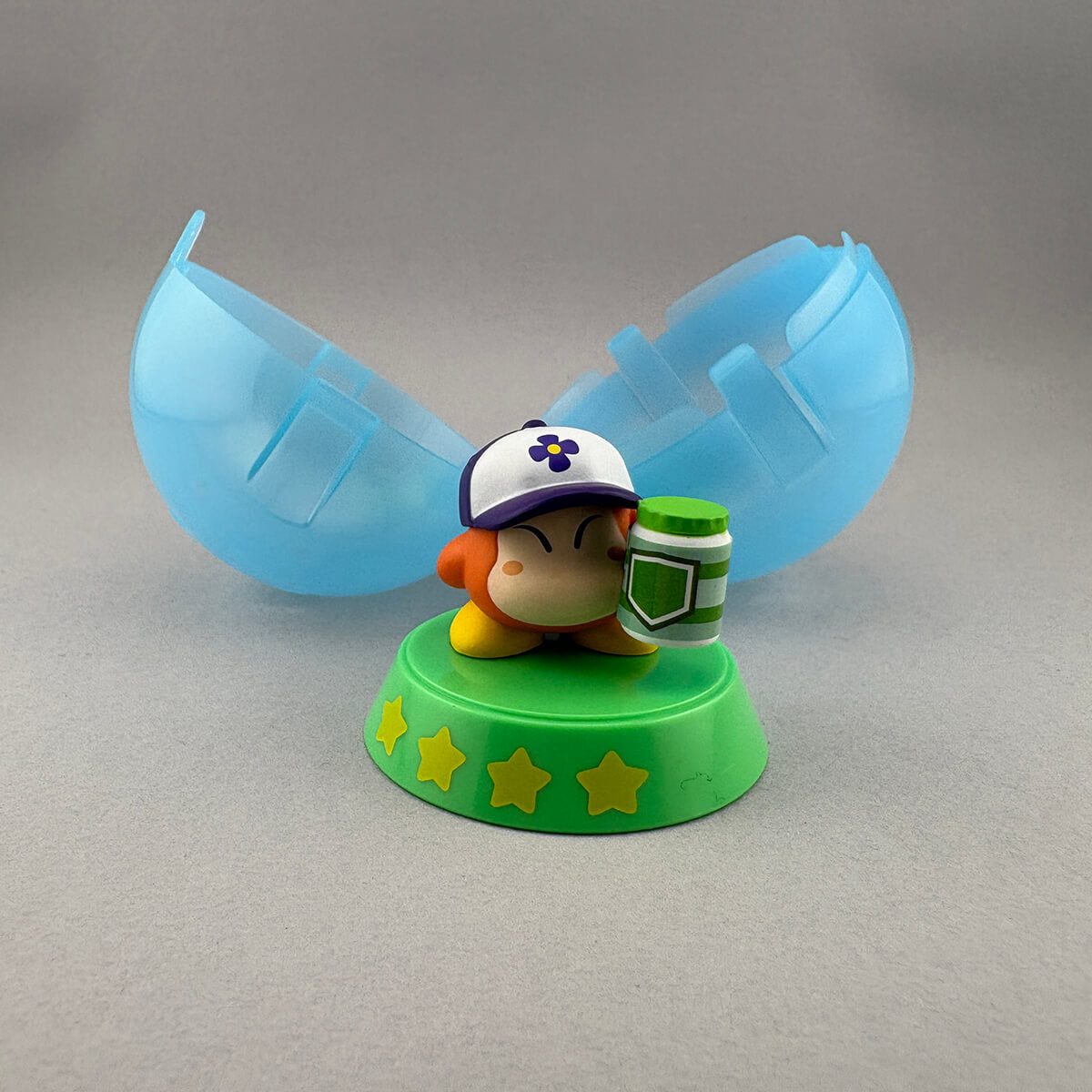 There are four Kirby Of The Stars characters in this Gachapon series: Waddle Dee The Tool Shop, Kirby Waka Cheeks, Fishing Pond Kirby and Kirby Deep Sleep.