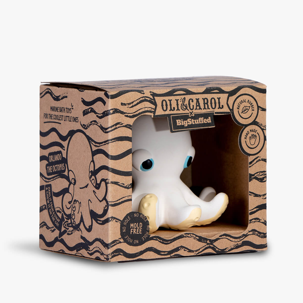 Orlando the Octopus Bath Toy by Oli & Carol. Adopt Orlando the Octopus, the coolest albino bath toy meant for teething, bath time and sensory play! It’s made out of one piece with no hole, making it perfect for a worry-free play. It’s different textures will help stimulate babies’ senses while playing safely during bath time.