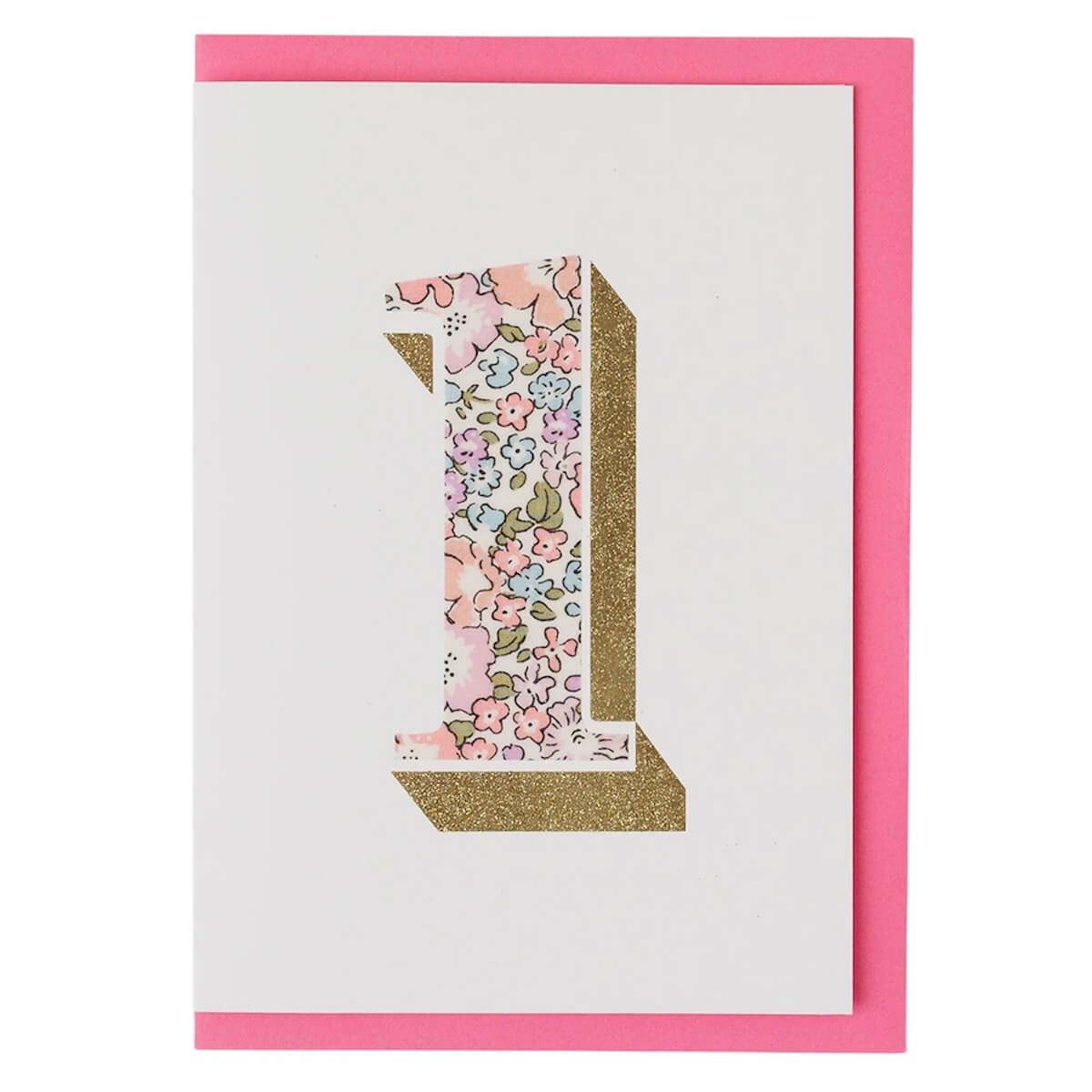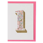 Age 1 Greetings Card in Michelle Lilac Liberty Print by The Charming Press. First birthday card featuring a beautiful glittery number print. Made with a biodegradable glitter. Celebrate those special childhood birthdays in style with this gorgeous, eco-friendly card!