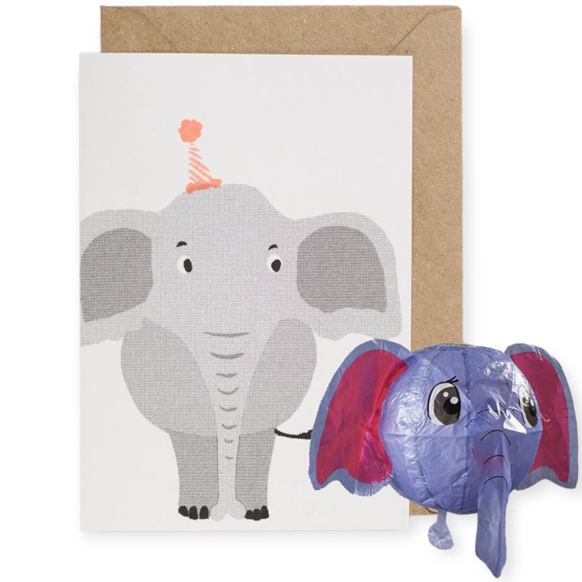 Elephant Japanese paper balloon greeting card by Petra Boase. Each card comes with traditional Japanese paper balloon. It comes flat, to use simply blow in the hole which will force the balloon to expand, inflate and form into its circular shape character. The balloons can be flattened and blown up over and over again.