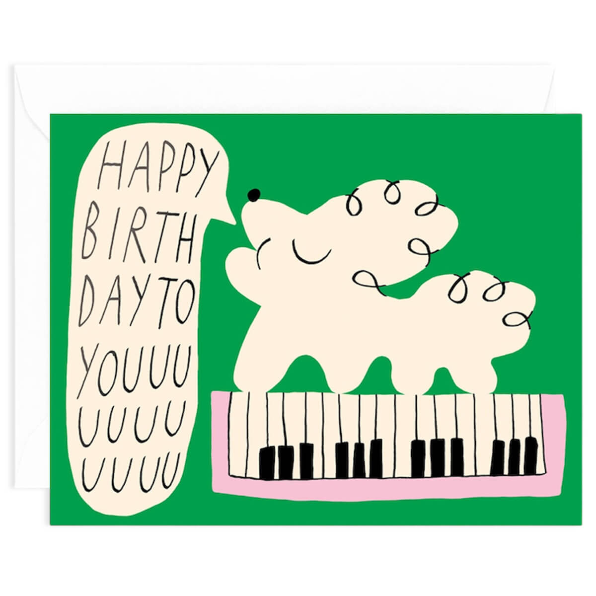 Happy Birthday Dog And Keyboard Greetings Card by Odile Ferraille for Wrap. Features Odile Ferraille’s charming dog illustration with black foil details. Blank inside with white envelope.