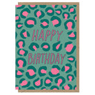 Turquoise Leopard Print Birthday greetings card by Earlybird Designs. Features an illustration by Elena Essex. Blank inside with kraft envelope.