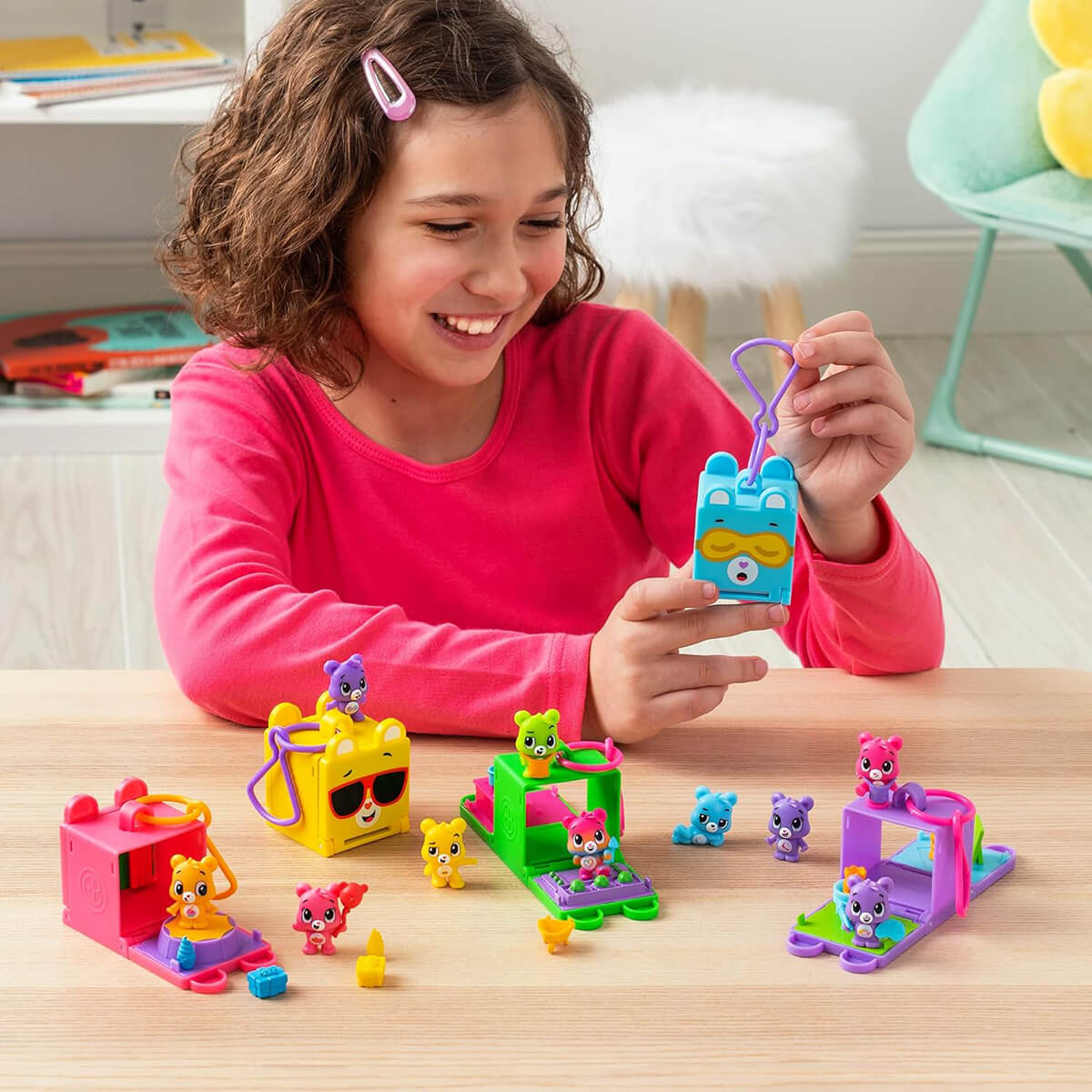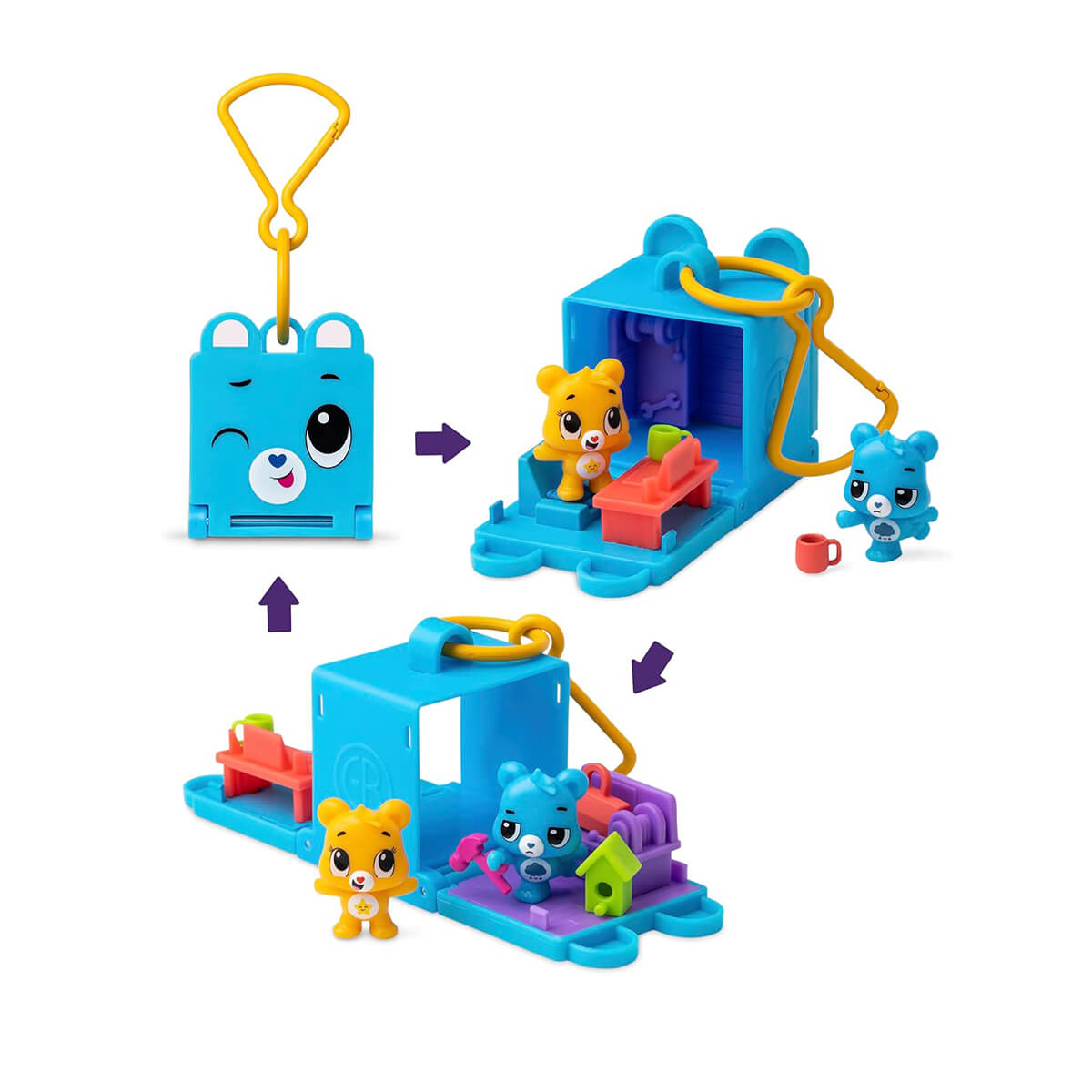 Care Bears Lil' Besties Play Cubbies Blind Box. Experience an exciting sharing and caring adventure unlike any other with the new Care Bears Lil’ Besties Surprise Cubbies. Your favourite, lovable Care Bears BFFs are now in mini and come with their very own miniature world to play in. Each surprise cubby comes with 2 Care Bears Lil’ Besties figures and lots of fun, colourful accessories. Fold down the sides of the cubby to reveal two hidden mini rooms inside for magical 360° play. And when you’re on-the-go, just fold back up the cubby and you’re ready for travel.