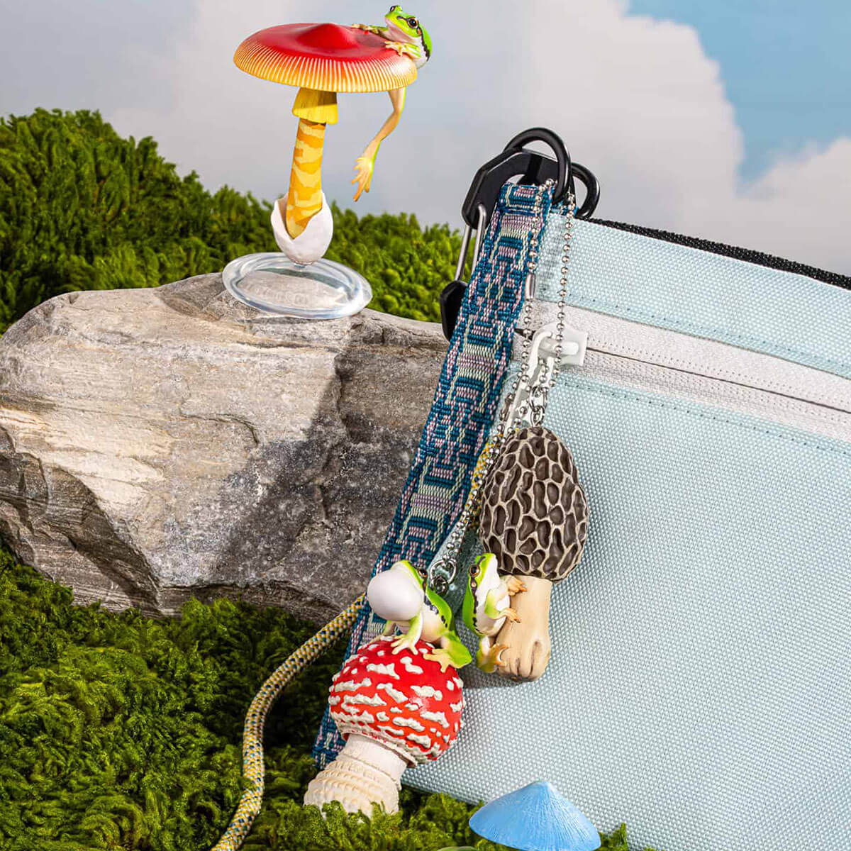 Mushroom & Frog Volume 2 Blind Box by Kitan Club. Discover the whimsical world of frogs and mushrooms with this charming Mushroom and Frog Blind Box Vol.2 collection! Each mystery box contains one of 8 unique designs, featuring beautifully detailed frogs resting on various mushroom species. The figures come in both stand-alone miniatures and keychain versions, making them perfect for display, collecting, or adding a touch of nature to your bag or keys.