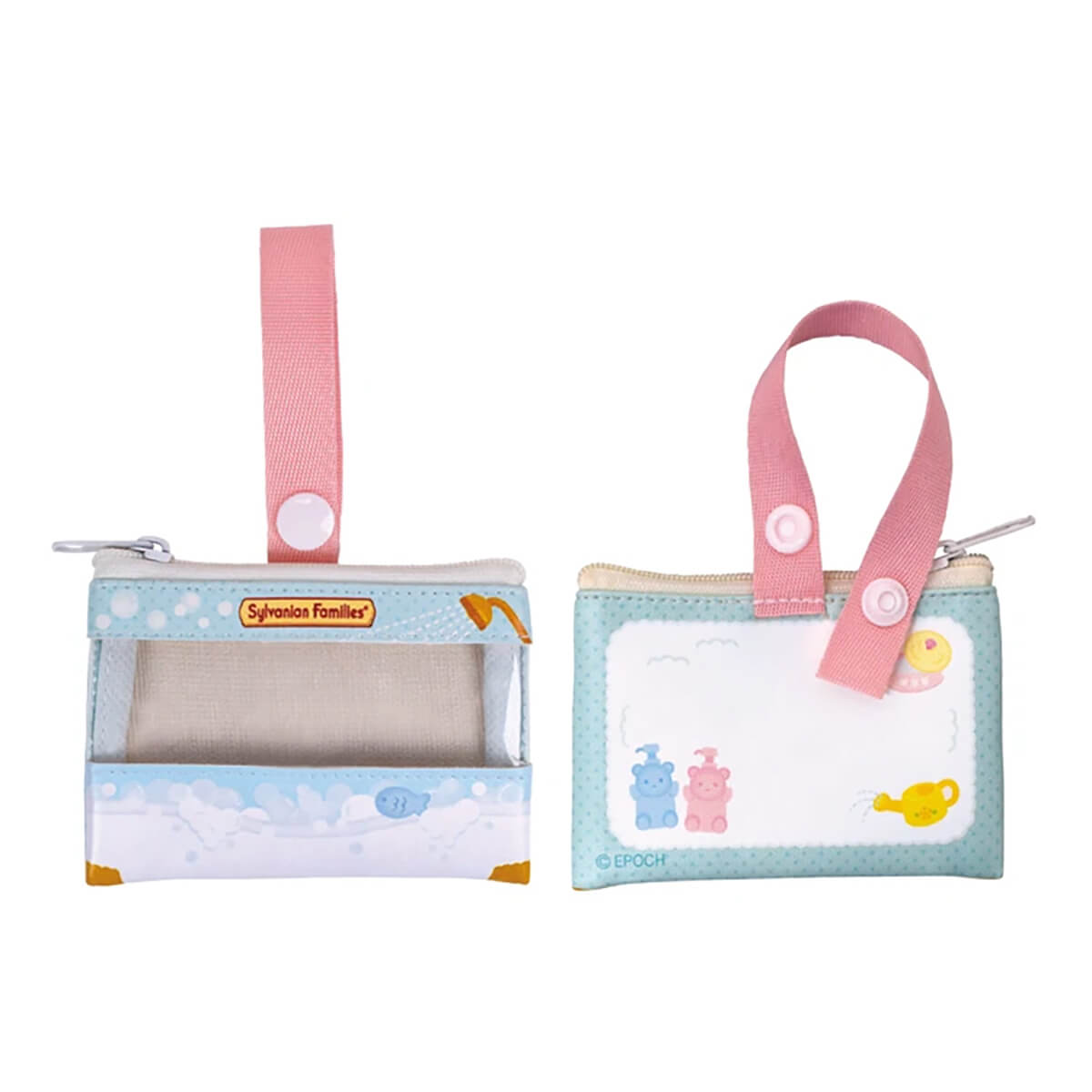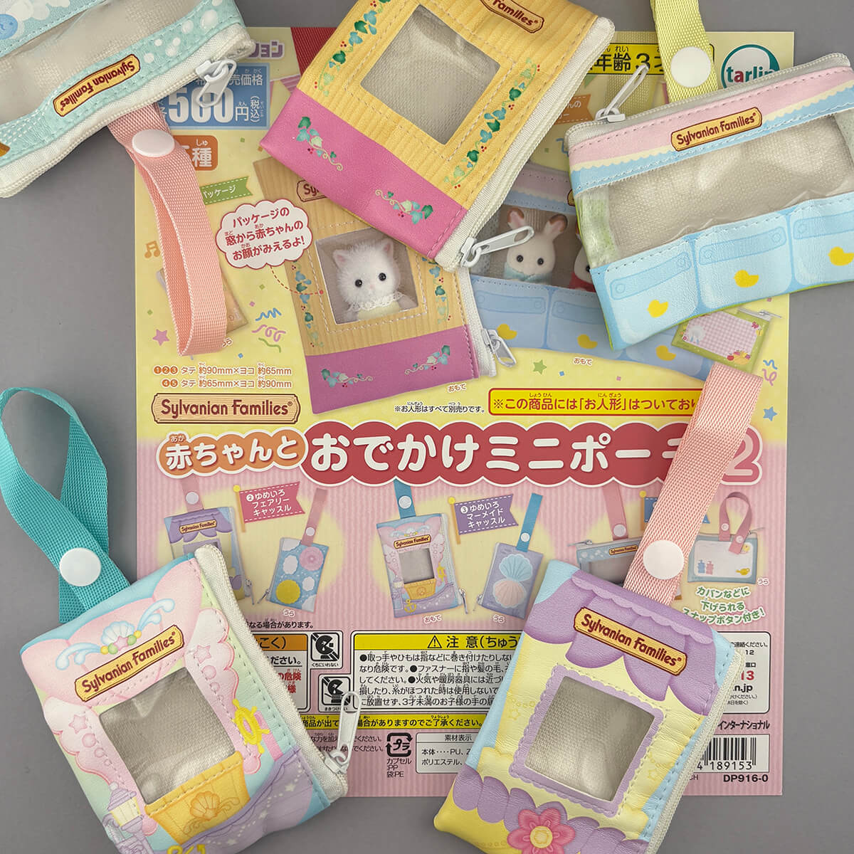 There are five different Sylvanian Families pouches in this Gachapon series: 1. Original Packaging 2. Dream Fairy Castle, 3. Dream Mermaid Castle, 4. Triplets Stroller and 5. Triplets Bathtime Together.