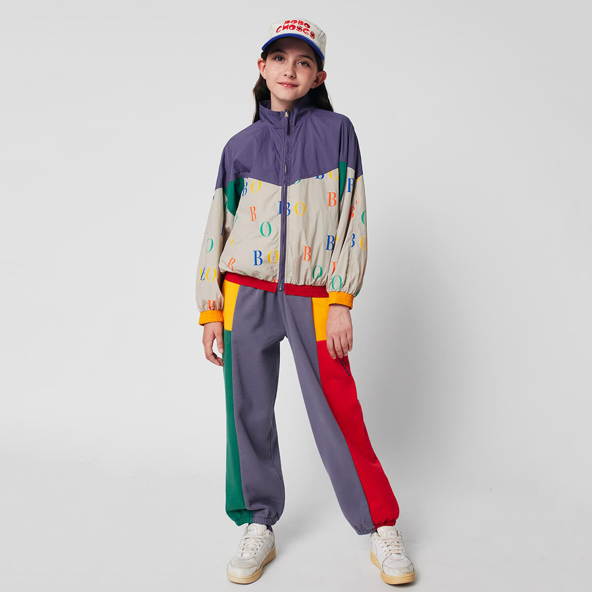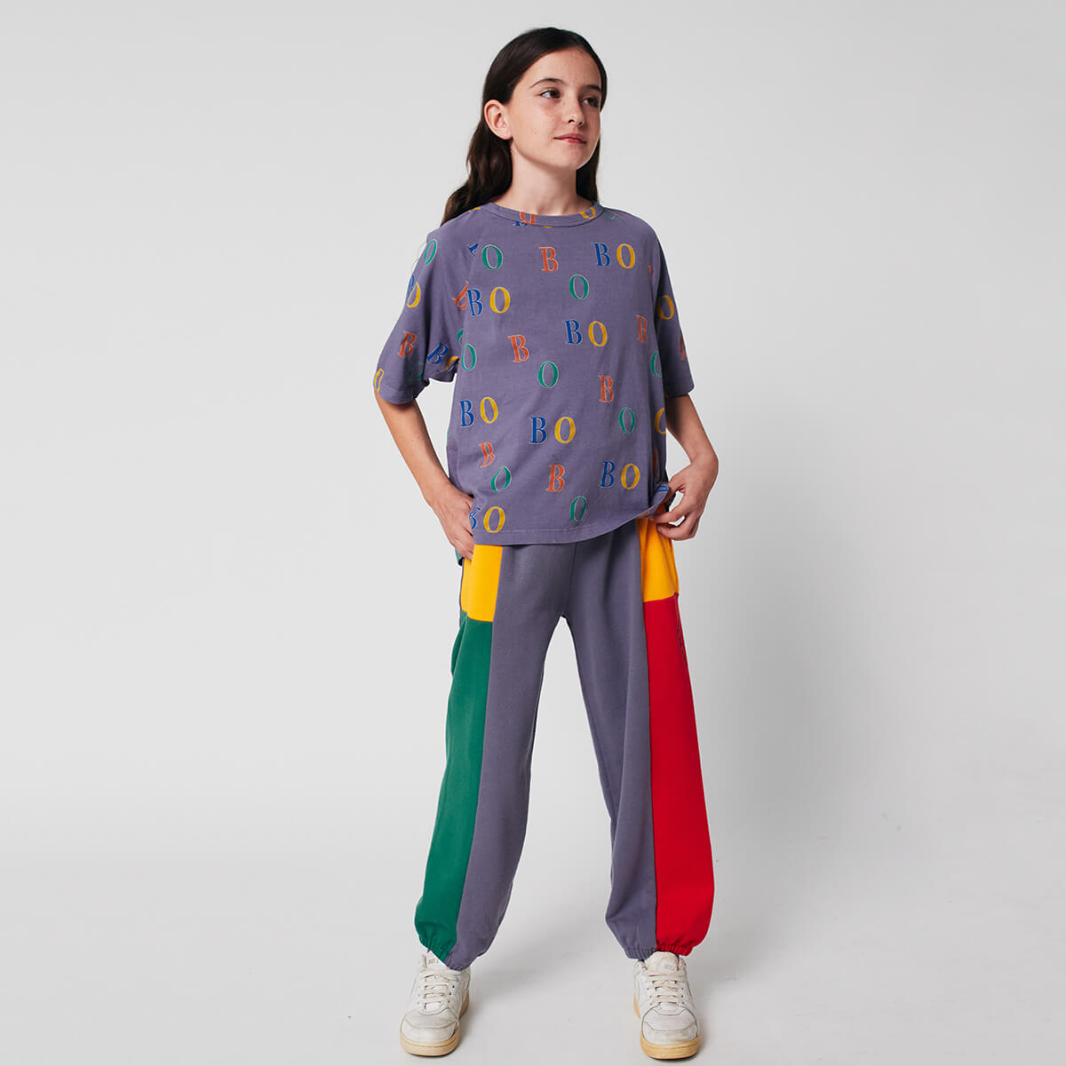 Bobo Choses Colour Block Sweatpants by Bobo Choses. These sporty multicoloured joggers are a comfortable wardrobe staple. Made from 100% organic cotton, featuring a patch pocket, seam pockets, a loose fit and an elasticated waistband with adjustable drawstring for easy, everyday dressing.