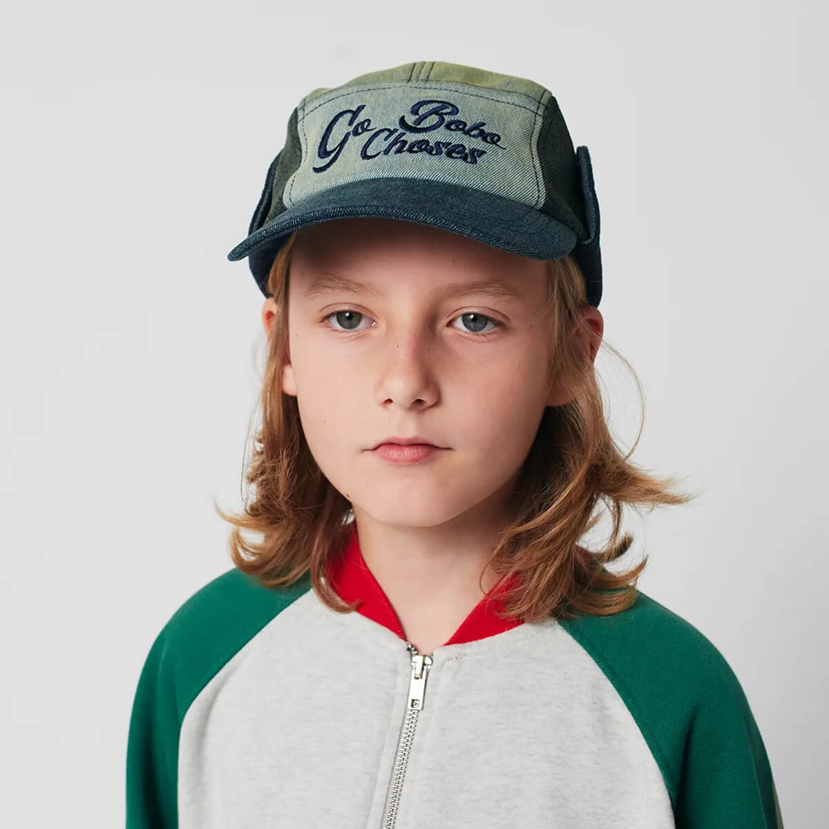 Denim Winter Cap by Bobo Choses. A denim hat with fold up ear flaps.