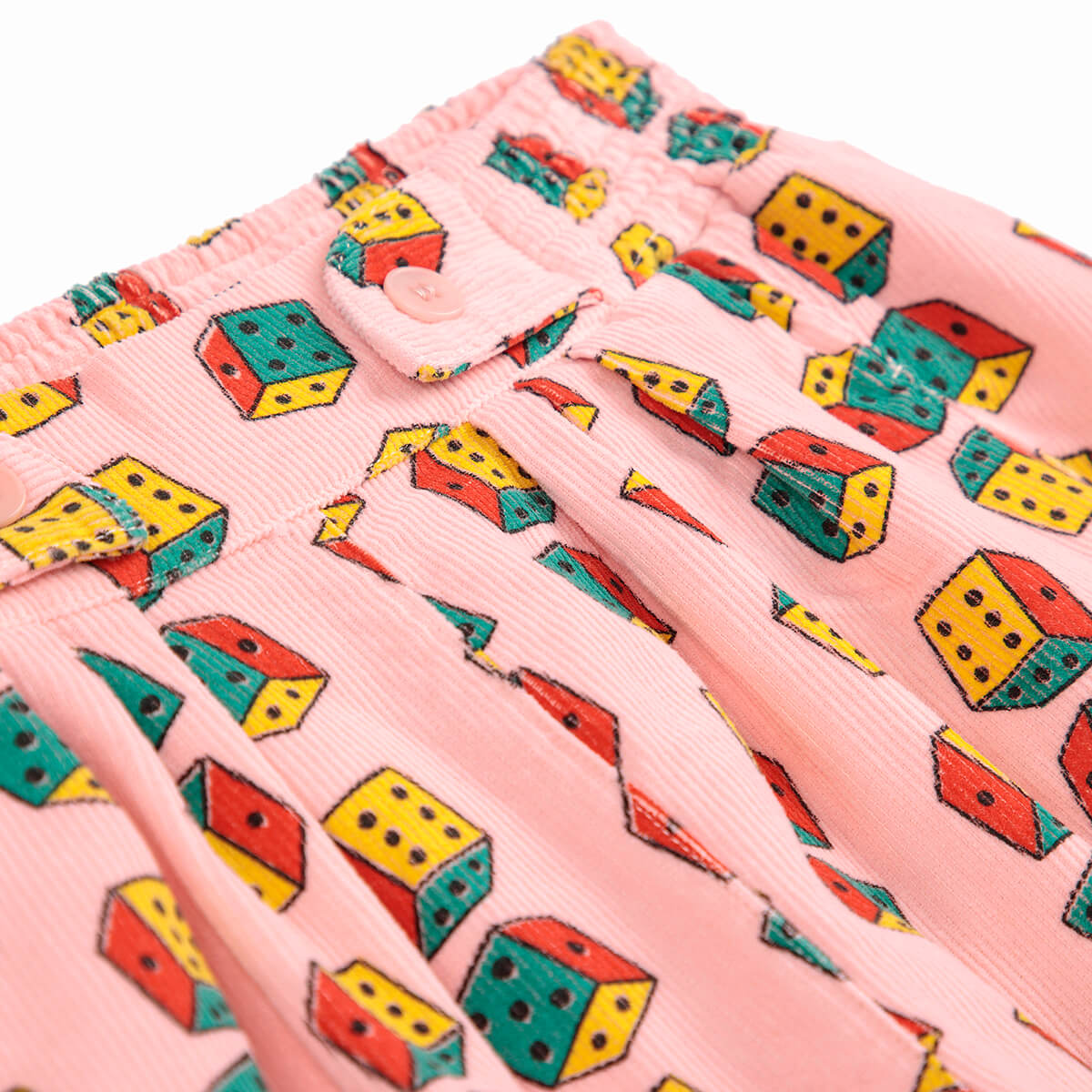 Dices All Over Micro Corduroy Pants by Bobo Choses. Fun and playful, these pink, corduroy trousers add a bold pop of colour to any outfit. Designed with a regular crotch, elasticated waistband, side pockets and front pleat details.