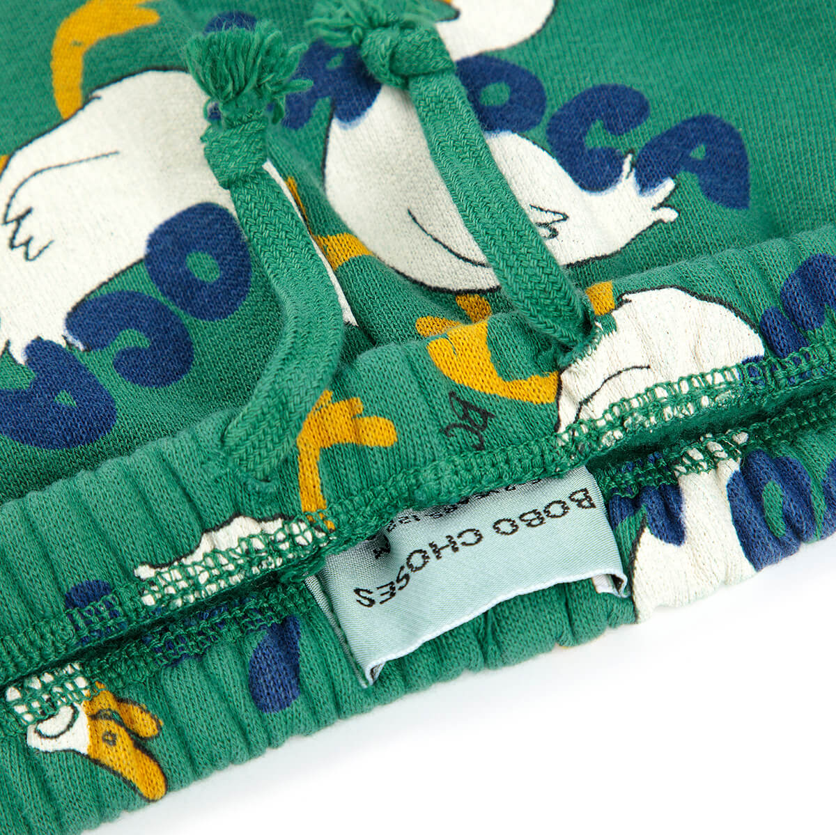 La Oca All Over Sweatpants by Bobo Choses. Playful and cosy, these green joggers are a comfortable choice for those cooler days. They feature seam pockets, a patch pocket and an elasticated waistband with adjustable drawstring.