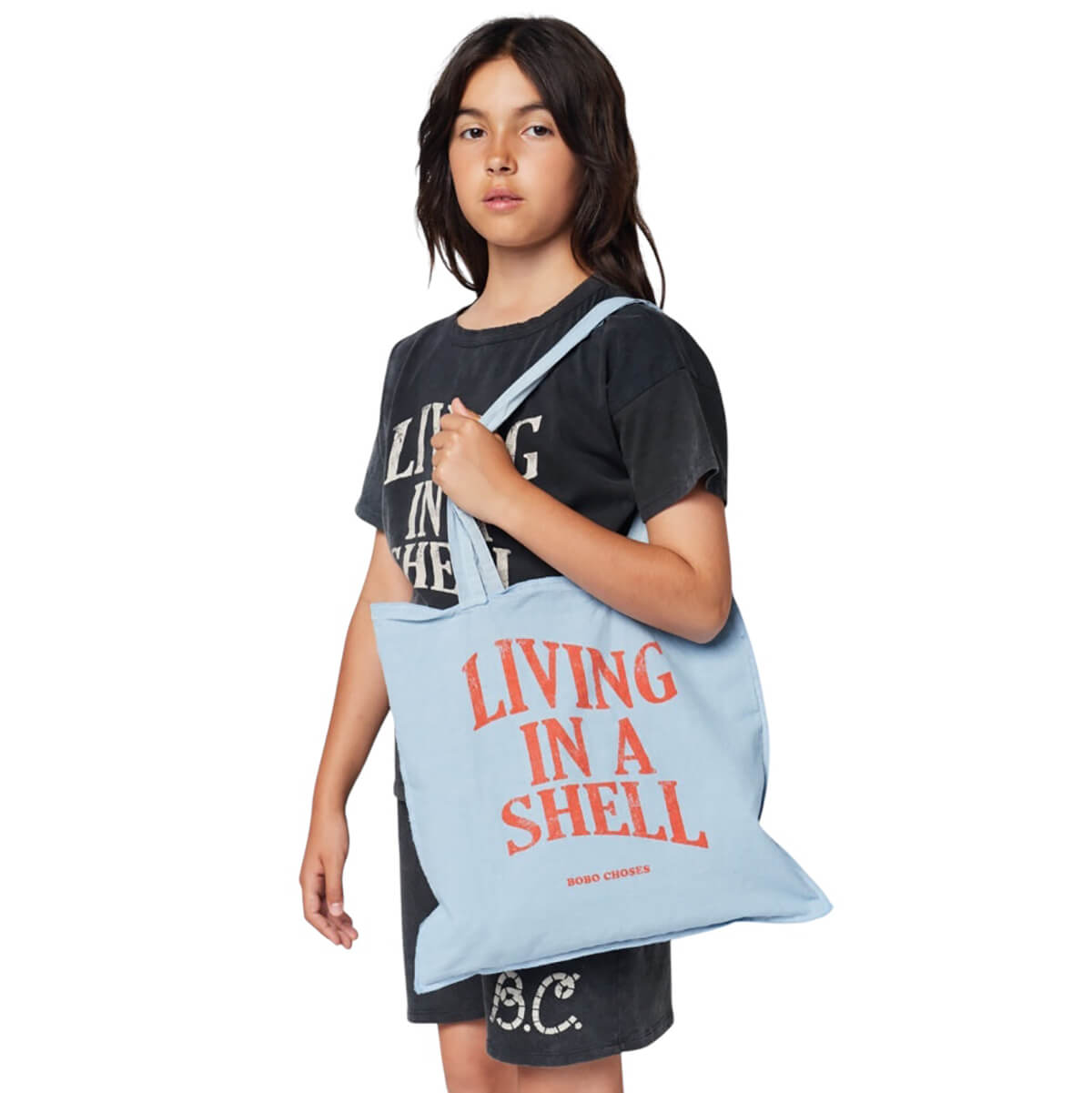 Living In A Shell Tote Bag in Blue by Bobo Choses