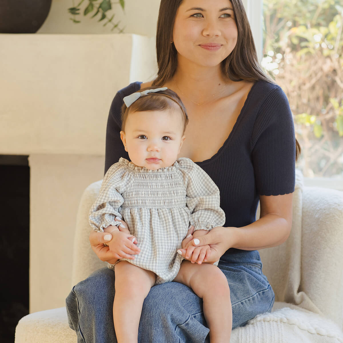 Eden Romper in Blue Gingham by Quincy Mae