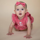 Little Floral Romper in Coral Cross Stitch by Lali - Last One In Stock - 18 Months