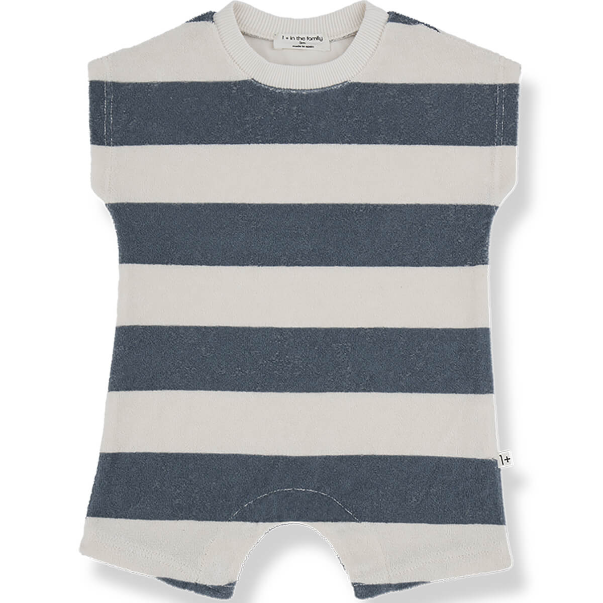 Marco Romper by 1+ in the Family. Baby romper in a striped terry fabric.