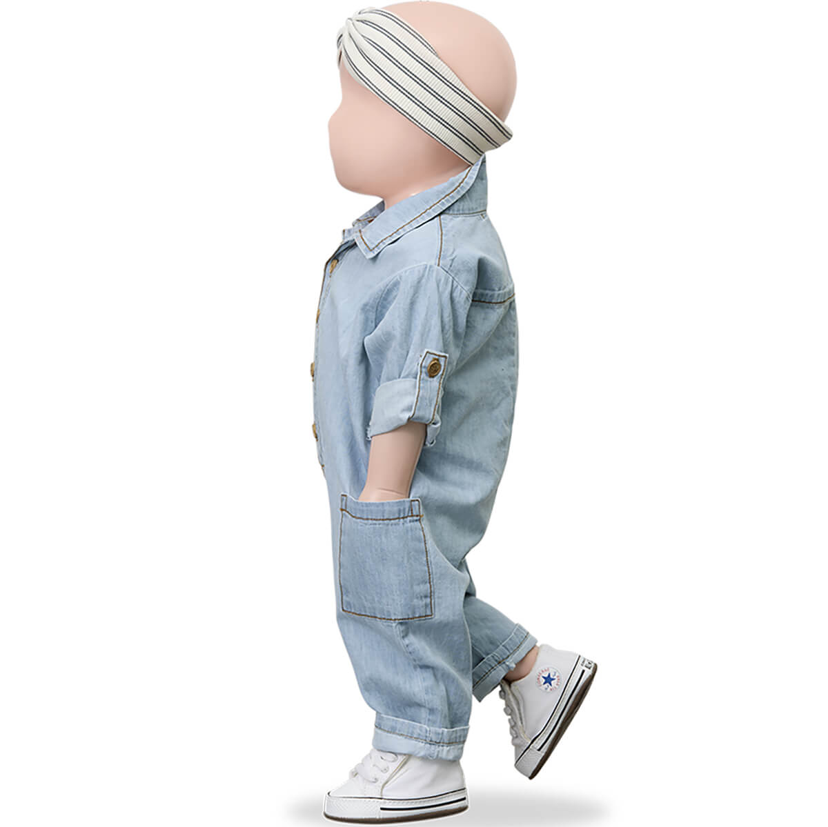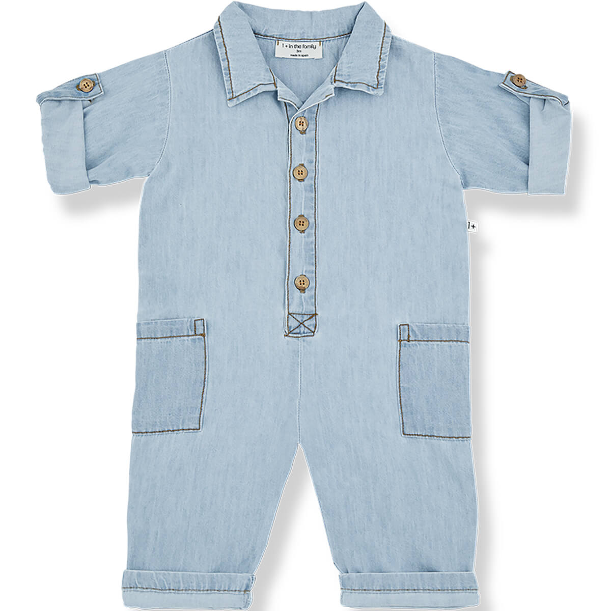 Massimo Overall by 1+ in the Family. Long-sleeve baby one-piece with wooden button fastenings throughout and pockets.