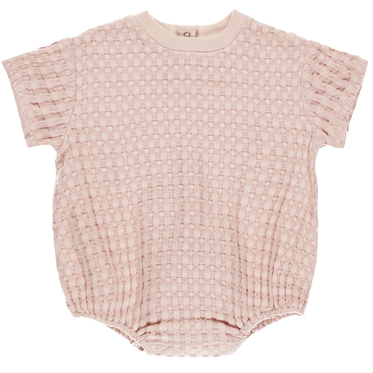 Relaxed Short Sleeve Bubble Romper in Bubblegum by Quincy Mae