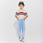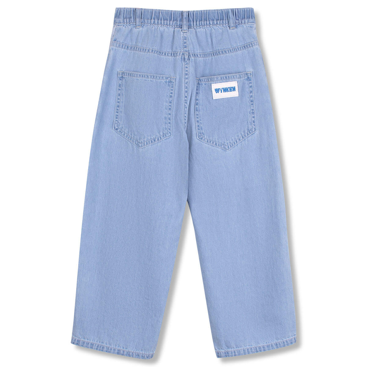 Lightweight Panel Jean by Wynken. Soft and lightweight, these cotton denim jeans are perfect for all-day summer wear. A gently tapered leg gives a modern look while allowing freedom of movement. The elasticated waistband ensures a secure, personalised fit, ideal for independent dressing. A stitched white-and-blue badge on the back pocket adds a playful, distinctive Wynken touch.