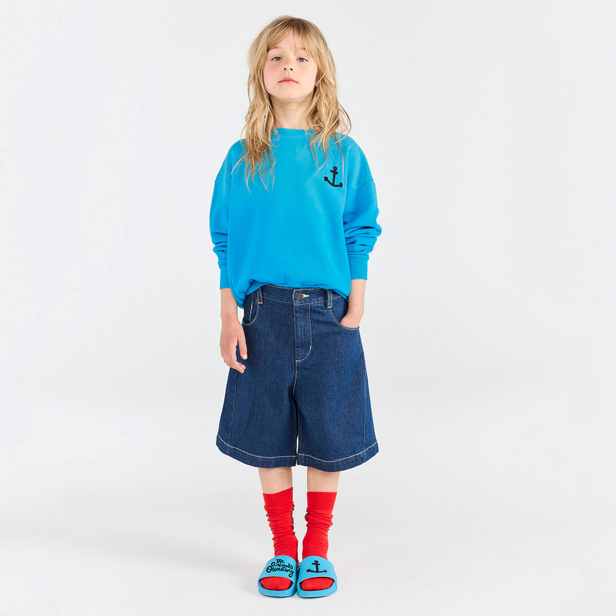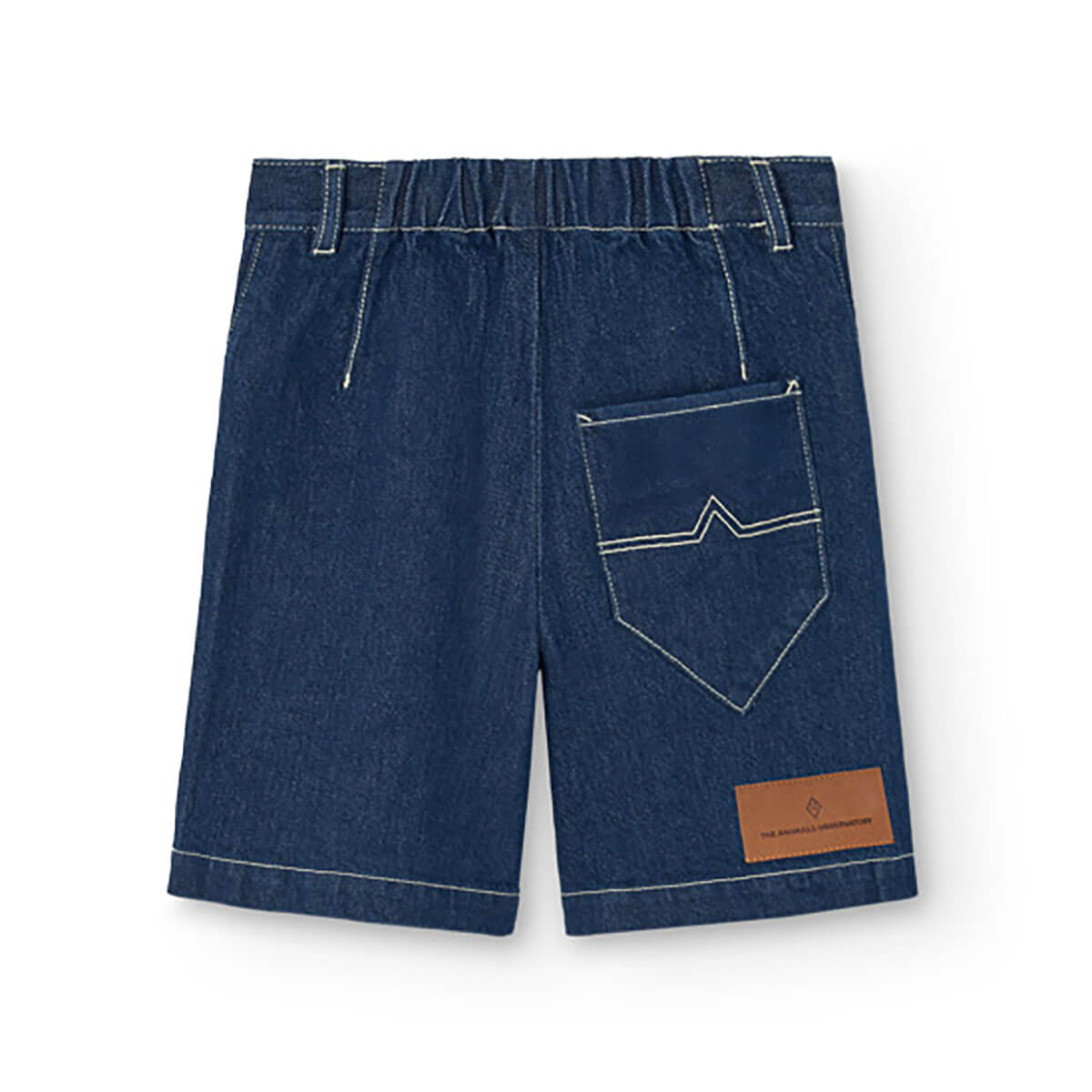 Muntjac Kid Denim Shorts by The Animals Observatory. Classic denim reimagined with bold stitching and a signature back pocket, offering sturdy versatility to these bermuda shorts. A timeless staple built for endless exploration.