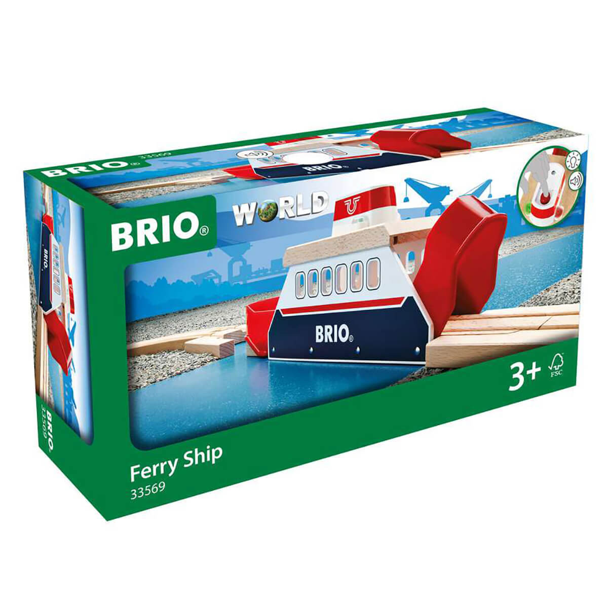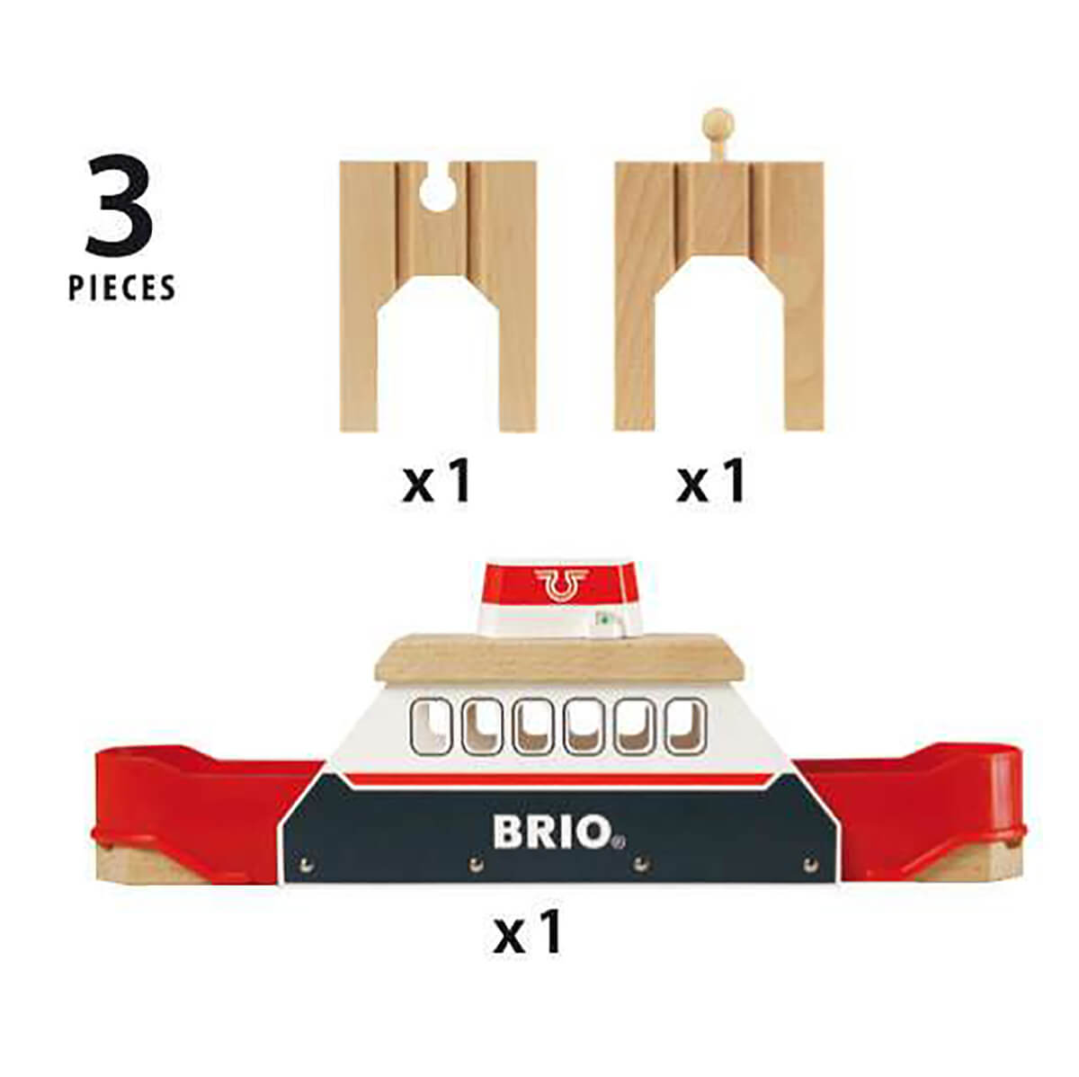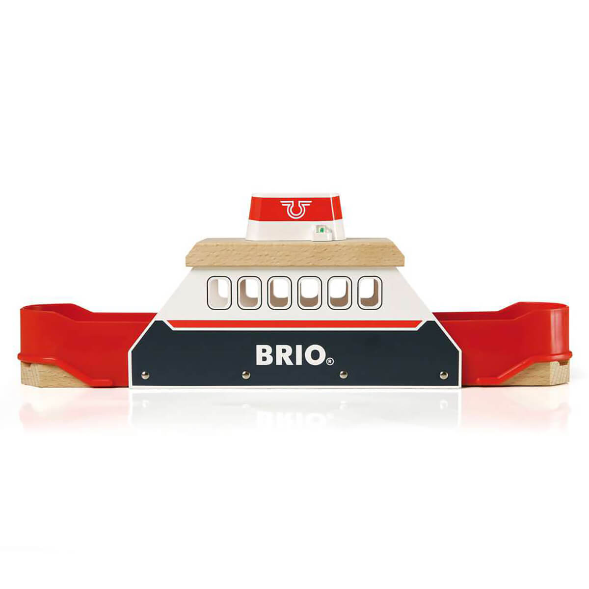 Ferry by Brio. Ship Ahoy! Transport the train on to dry land with the BRIO Ferry. The ship features light and sound that is activated with a simple push of a button. With the two docking tracks, the ferry door is opened upon arrival, please disembark.