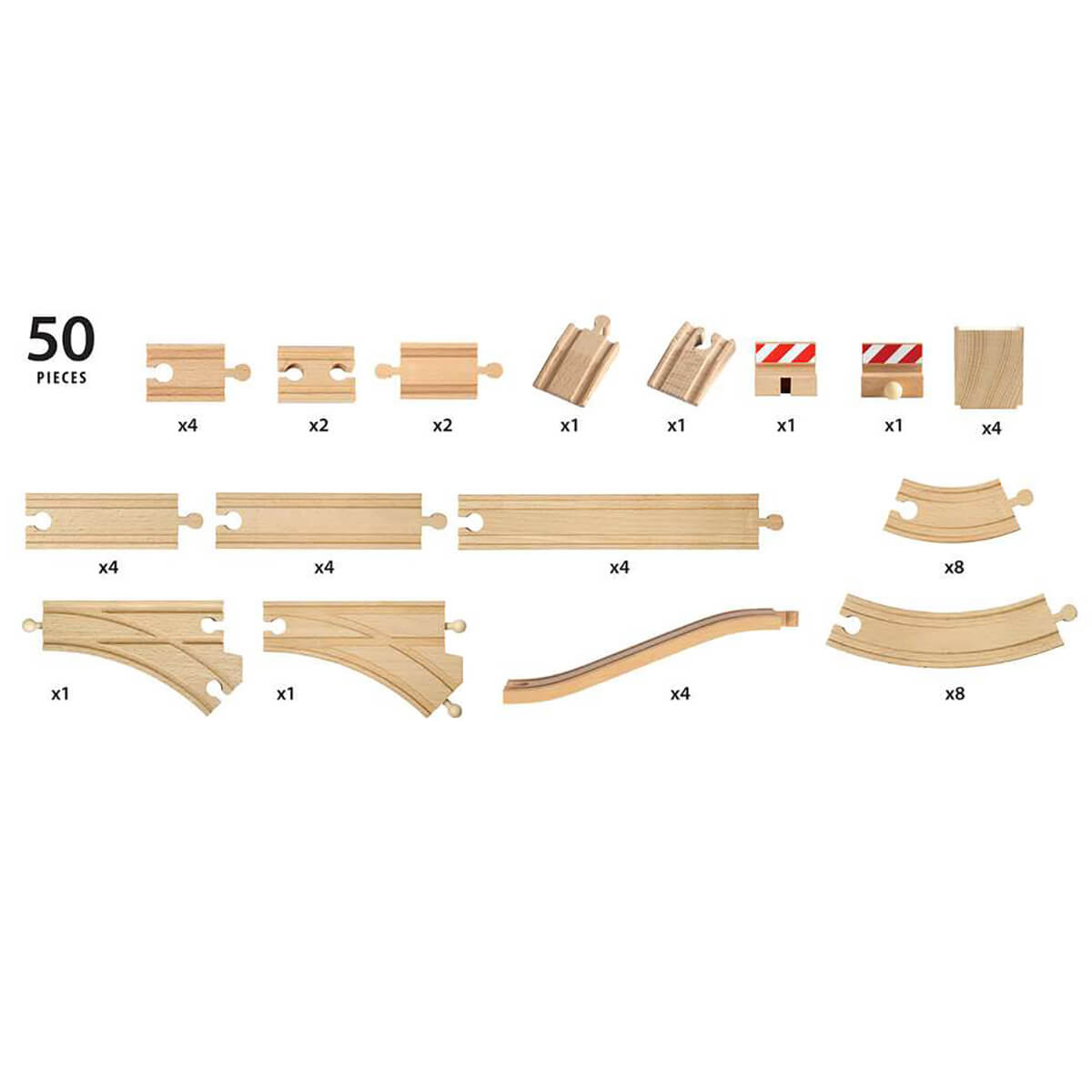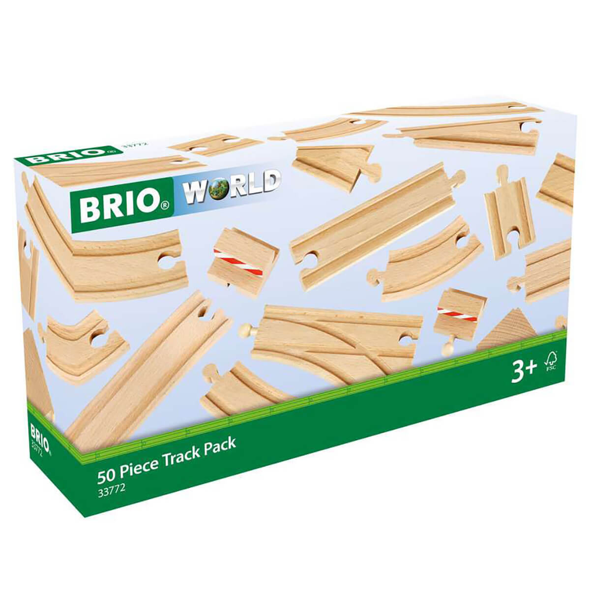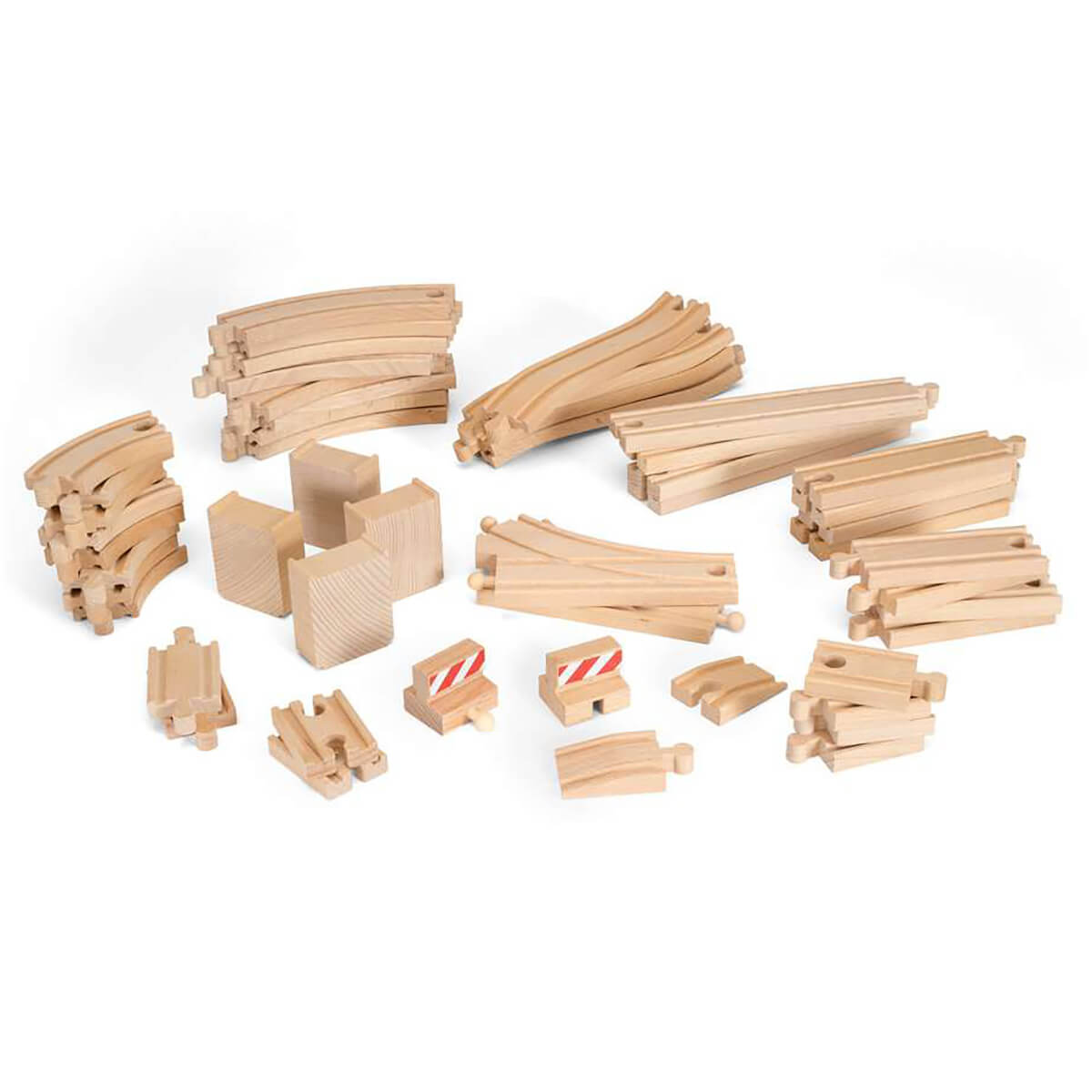 Special Track Pack by Brio. Add to your existing Brio World railway with this expansion pack of 50 FSC® certified wooden tracks. Create bigger layouts and new adventures with straight, curved, switching and ascending tracks as well as other track accessories like ramps and stops. These wooden tracks are simple to assemble and take apart, allowing children to add new dimensions to their railway play and stimulate their logistical thinking abilities whilst building.