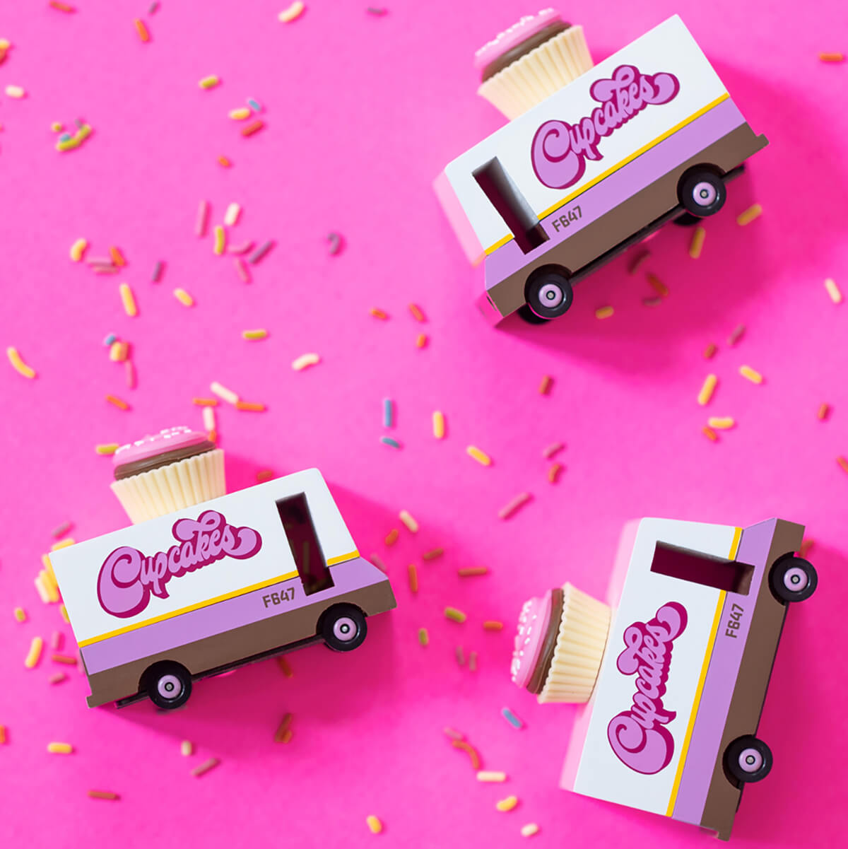 There's never been a SWEETER wooden toy. Please welcome the Cupcake Van: complete with groovy graphics and an adorable squishy topper. Sprinkle this CANDYCAR® into any playset or collection!