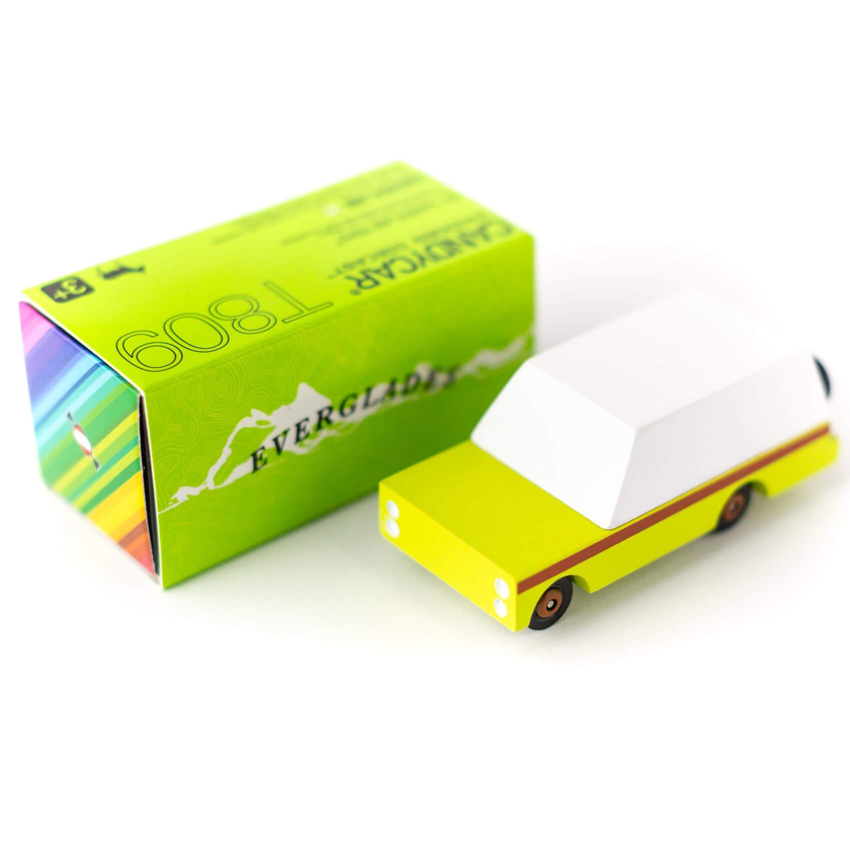 Everglades Mule Mini Candycar By Candylab Toys. Crikey! The Everglades are full of some pretty wild crocs and alligators, you’re going to need a tough little truck to get through it. Our bright Yellow-Green Mule is ready for the test.