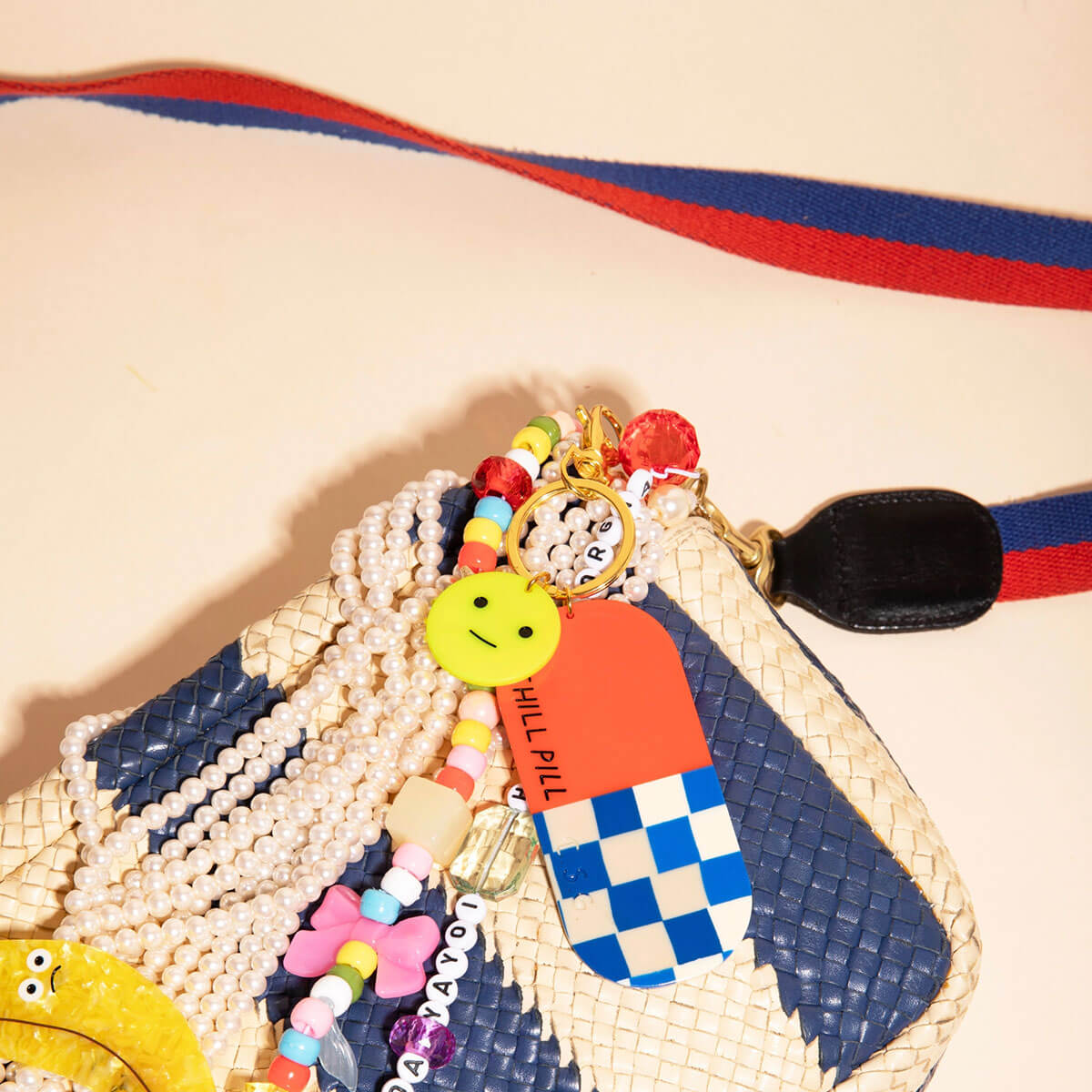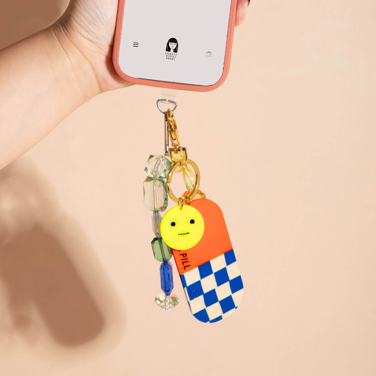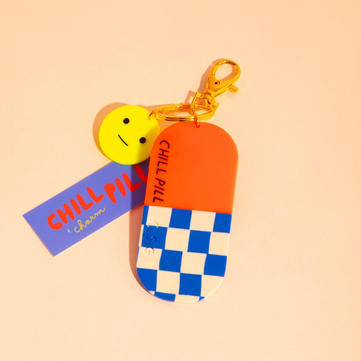Chill Pill Charm by Carolyn Suzuki. Everywhere Charms! These glossy acetate charms come with a clasp attachment, making them perfect for layering on bags, purses, or using as keychains.