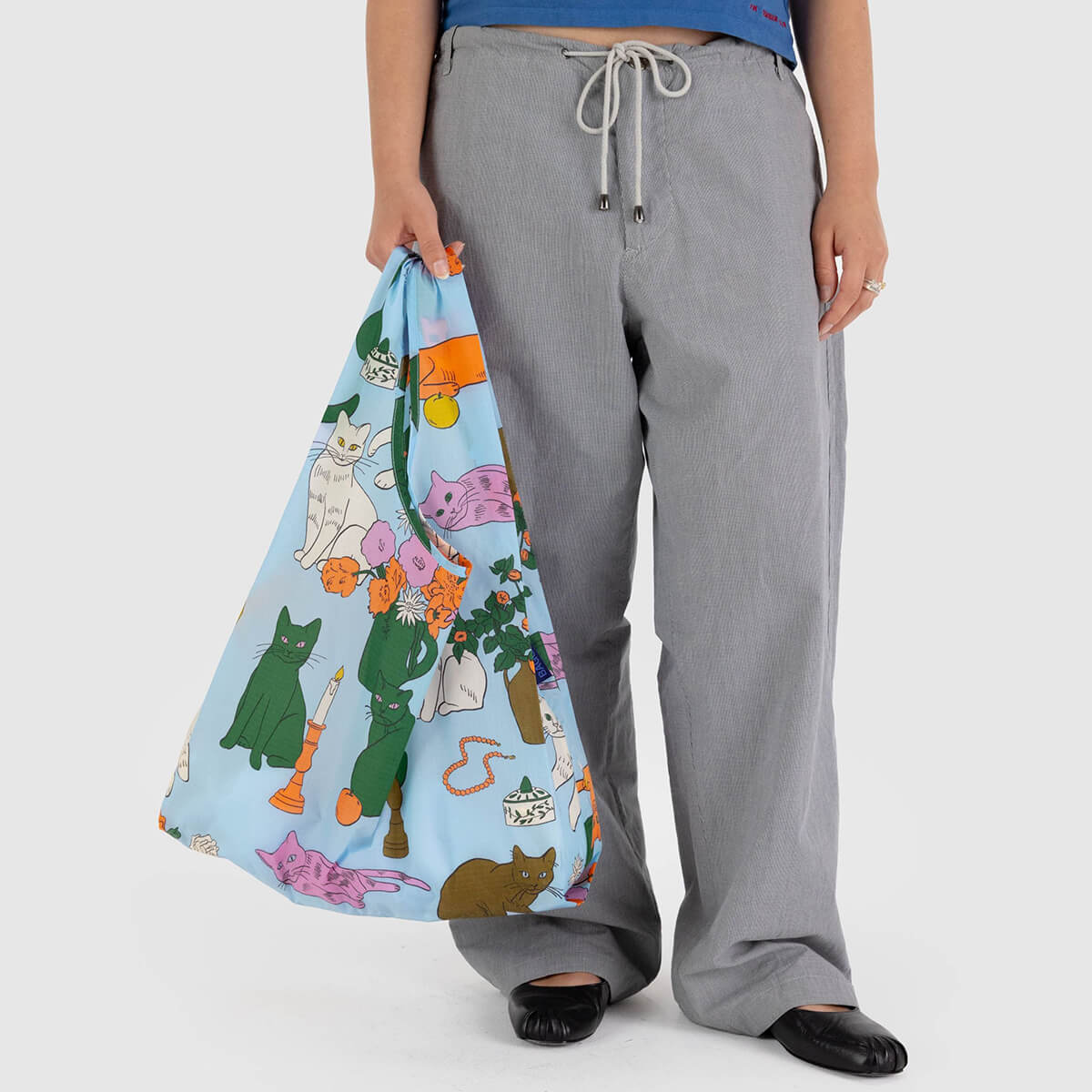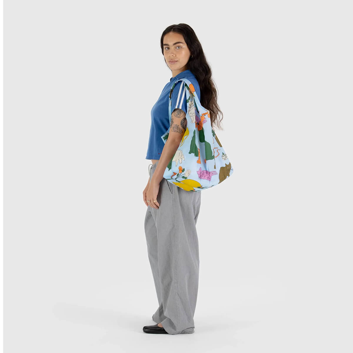 Standard bag by Baggu. Baggu's best selling reusable bag isn't just for the grocery store, it goes everywhere and hauls almost anything. Carries 2-3 plastic grocery bags worth of stuff comfortably in hand or over your shoulder.