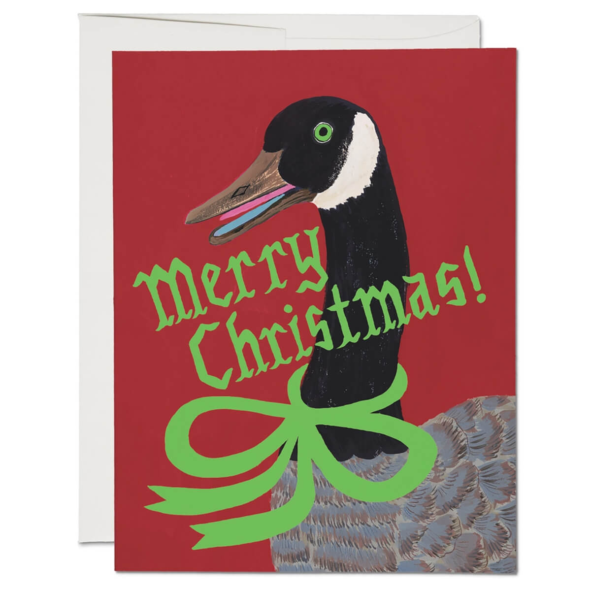Christmas Goose greetings card by Red Cap Cards. Features an illustration by Emily Isabella. Printed in the USA on heavyweight card stock. Blank inside with white envelope.