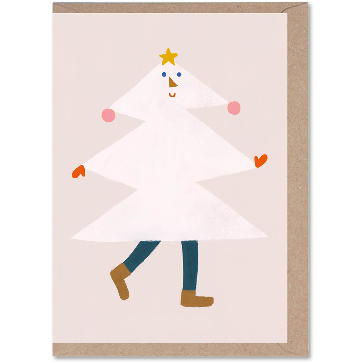 Madame Pine Christmas Greetings Card by Rumble Cards. Featuring a fun Christmas tree illustration. Blank inside for your own message. Brown recycled envelope.