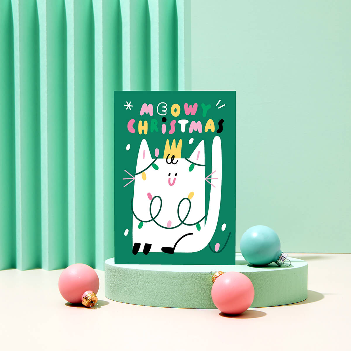Meowy Christmas Greetings Card by Susie Hammer for Rumble Cards
