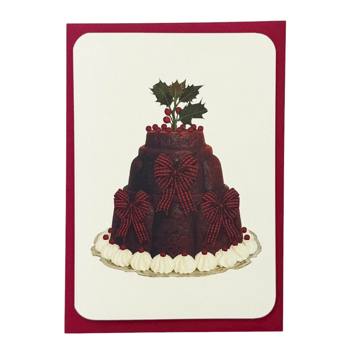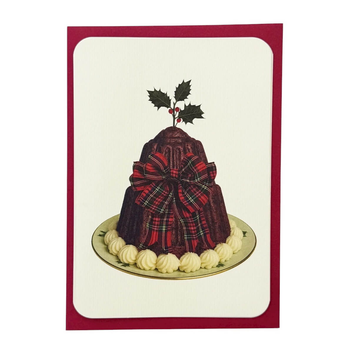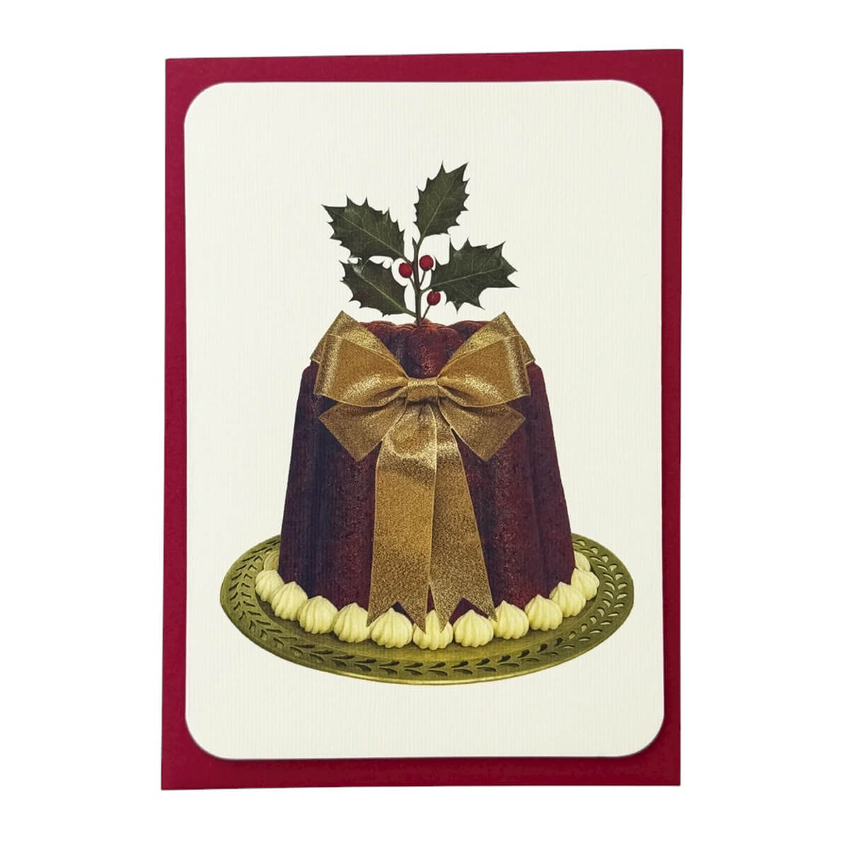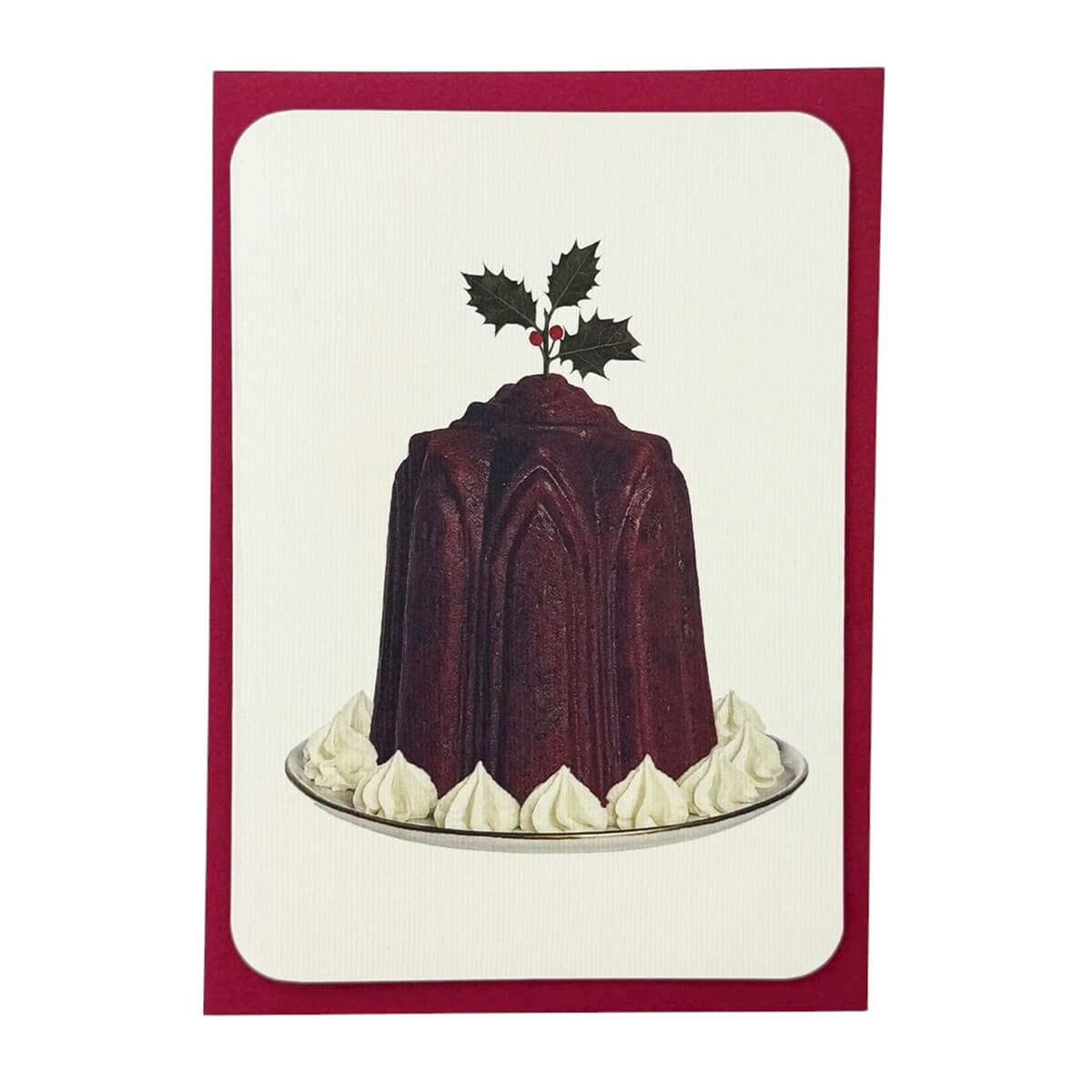Plum Pudding Set Of 6 Christmas Greetings Cards by Canonbury Press. Inspired by decorative Victorian plum puddings, this festive card set features richly adorned Christmas puddings styled with seasonal greenery and photographed by Alexandra Simms. Printed in England. A nostalgic and joyful choice for seasonal greetings or to accompany a thoughtfully wrapped gift.