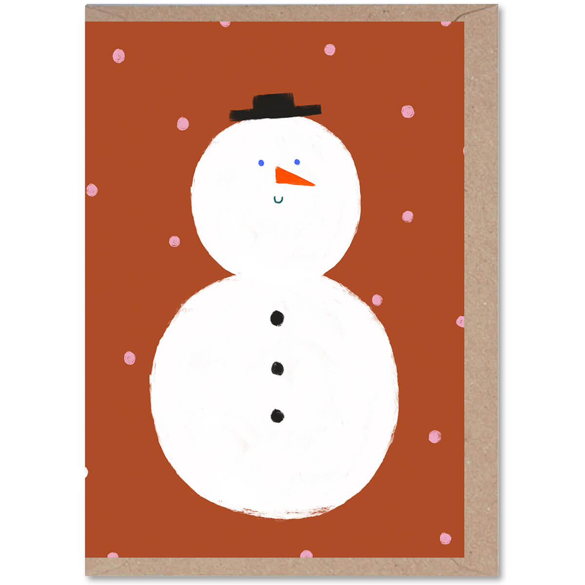 Snowman Christmas Greetings Card by Rumble Cards. Featuring a sweet snowman illustration. Blank inside for your own message. Brown recycled envelope.