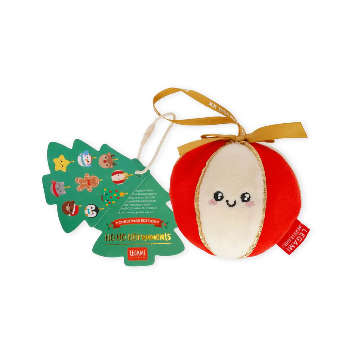 Plush Christmas Tree Decoration. If the same old Christmas tree decorations are getting a little bo-bo-boring, shake things up with the Plush Christmas Decoration Oh-Oh-Ohrnaments - Ball from Legami! Super-soft and oh-so-sweet, it will make any tree unique as well as utterly unbreakable. With loop for hanging on the Christmas tree.