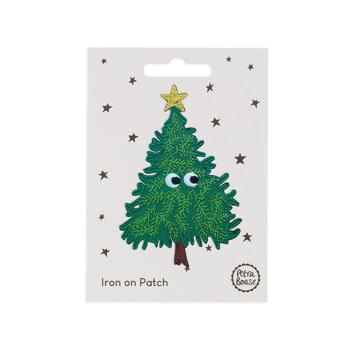Christmas Tree iron on patch by Petra Boase. Richly embroidered festive patch, with an iron-on backing so can be removed from the card and ironed on to a favourite t-shirt, rucksack or whatever you like! The patch has shimmery green embroidered detailing and embroidered googly eyes. Jazz up a jumper for the Christmas party, stitch to the Christmas Stockings or decorate the Christmas dinner napkins. The creative opportunities are endless for fun Christmas crafting.