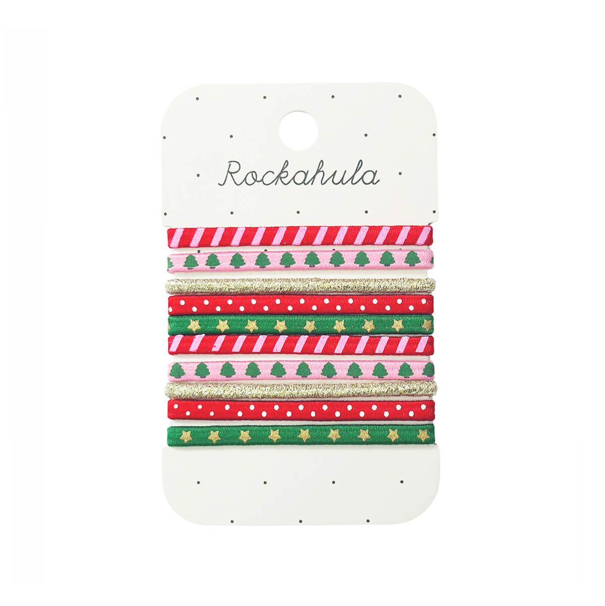 Jolly Christmas Elastic Pony Pack by Rockahula. Take your pick of the festive fun with this Christmassy elastic pony pack! With a selection of designs to choose from in super festive colours, these easy everyday ponies are the perfect way to add a burst of Christmas fun to your hair.