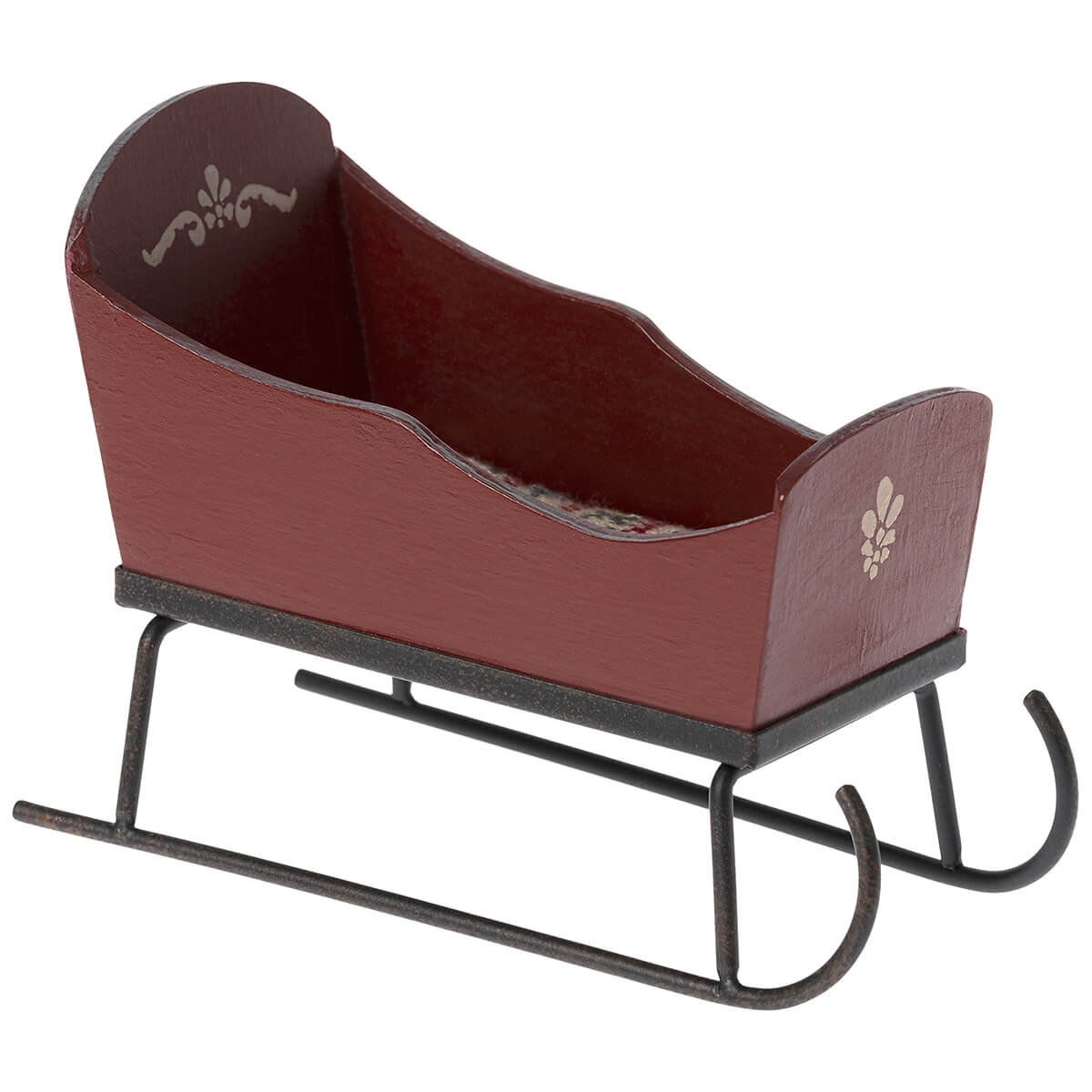Mouse Sleigh by Maileg. A lovely sleigh with a soft mattress to keep the passengers warm and comfortable during the ride. This sleigh fits the smallest friends and mice perfectly. It has beautiful handpainted details - variation may occur.