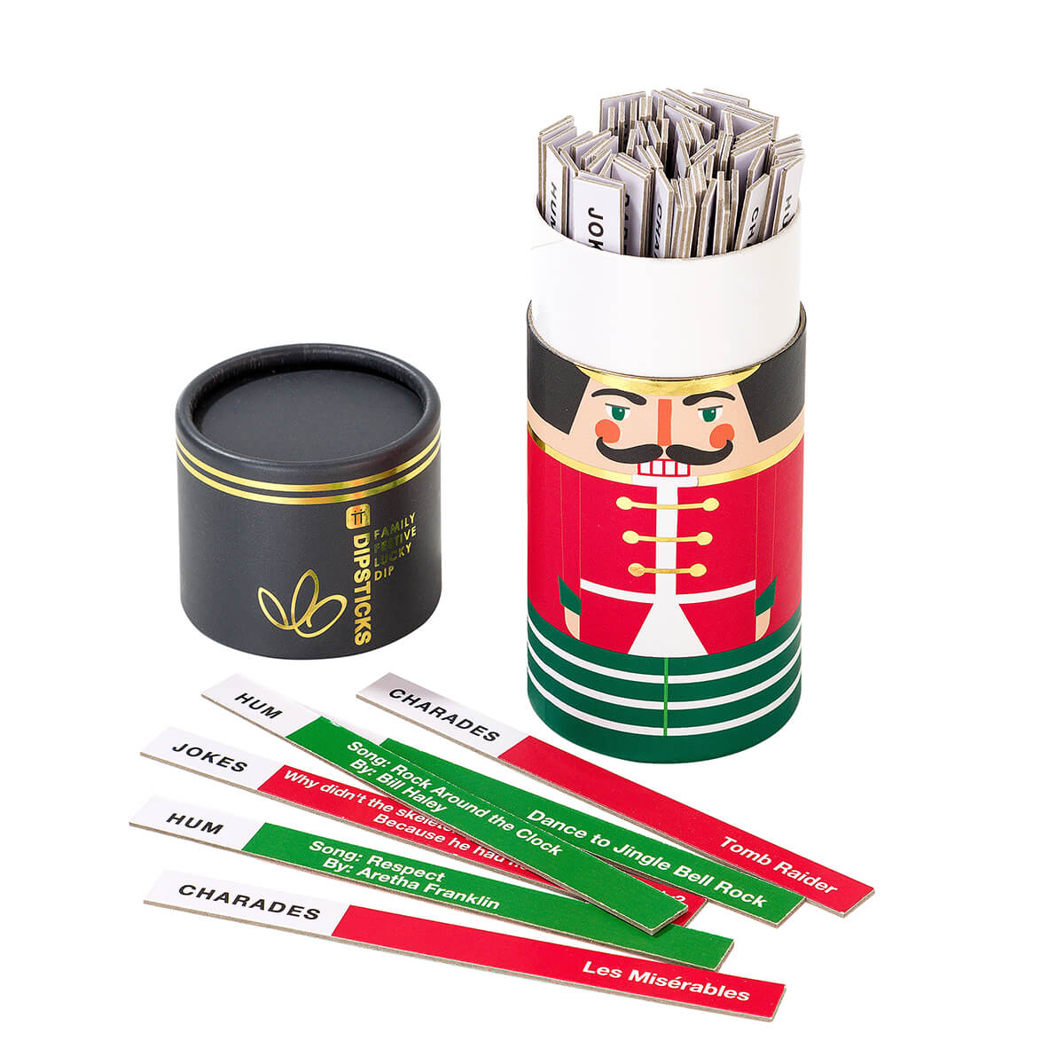 Botanical Nutcracker Dipsticks by Talking Tables. Dip in, pick a stick and have some family festive fun! You could pick a stick featuring a Charade, Joke, Dare or Hum That Tune.